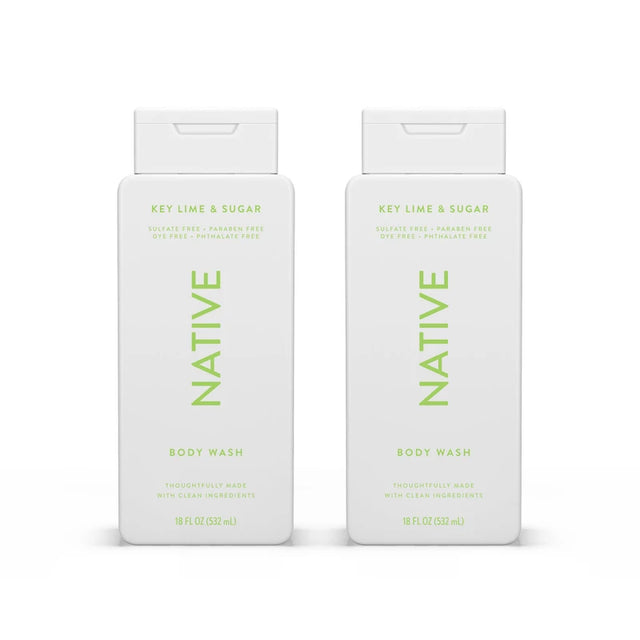 Native Body Wash Contains Naturally Derived Ingredients | For Women & Men, Sulfate, Paraben, & Dye Free Leaving Skin Soft and Hydrating |Key Lime & Sugar 18 oz - 2 Pk