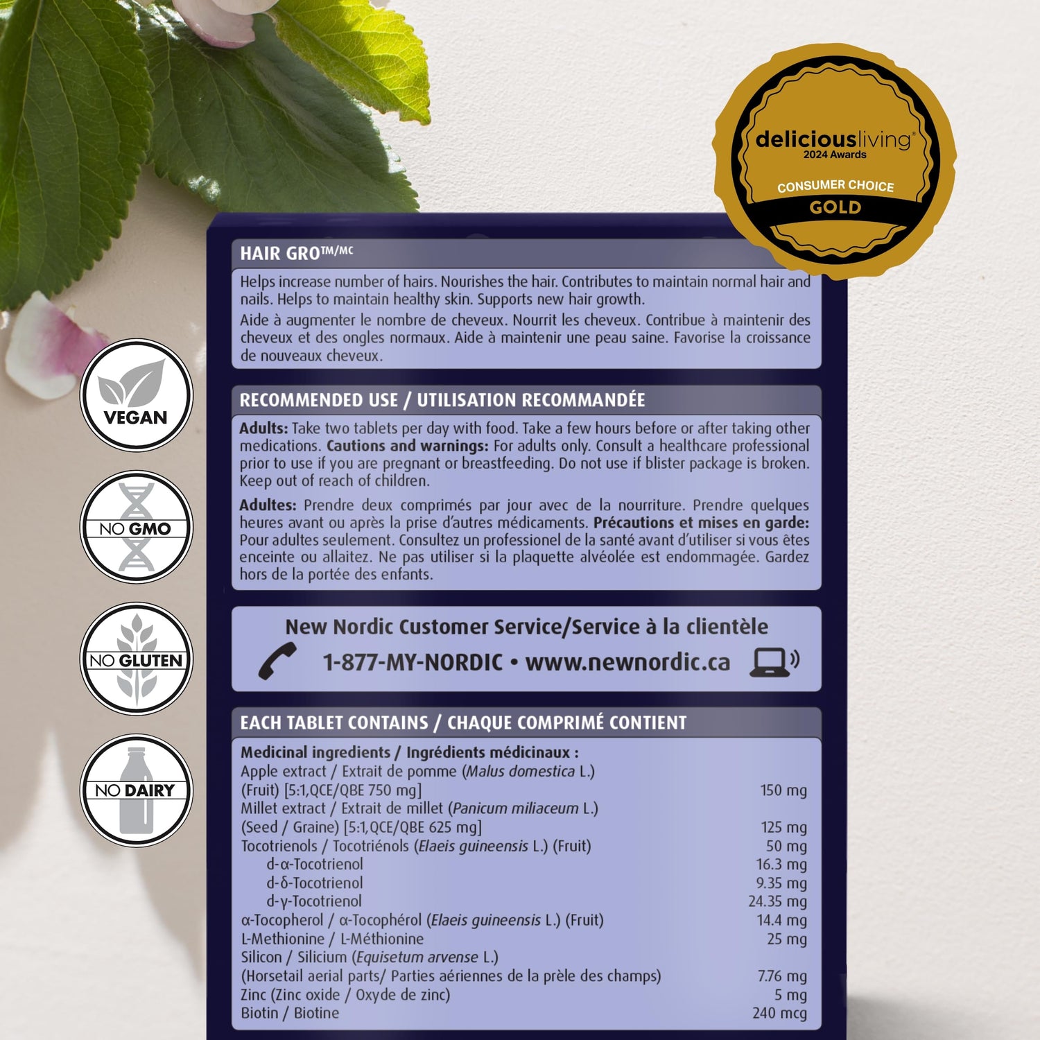 NEW NORDIC Hair GRO, Hair Growth Supplement, Biotin & Palm Fruit Extract Tocotrienols for Natural Regrowth, 60 Count (Pack of 3)