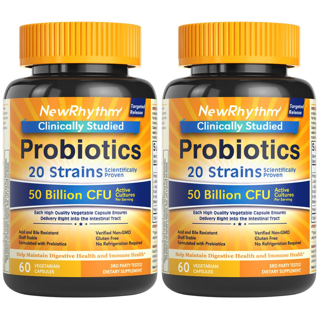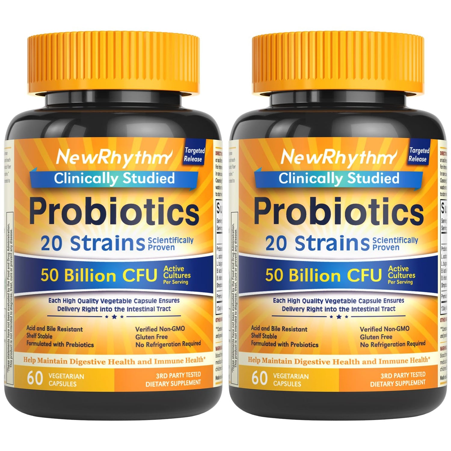 - ★50 Billion 20 Strains Targeted Release Formula★ NewRhythm 50 Billion Probiotics Capsules is Scientifically Backed and Clinically Proven, Formulated by Doctor with 50 Billion Living Organisms Per Serving, Featuring Targeted Release Technology to Help Probiotics Survive Stomach Acids and Reach Your Intestinal Track. Organic Prebiotics Fiber is also Included In the Formula.