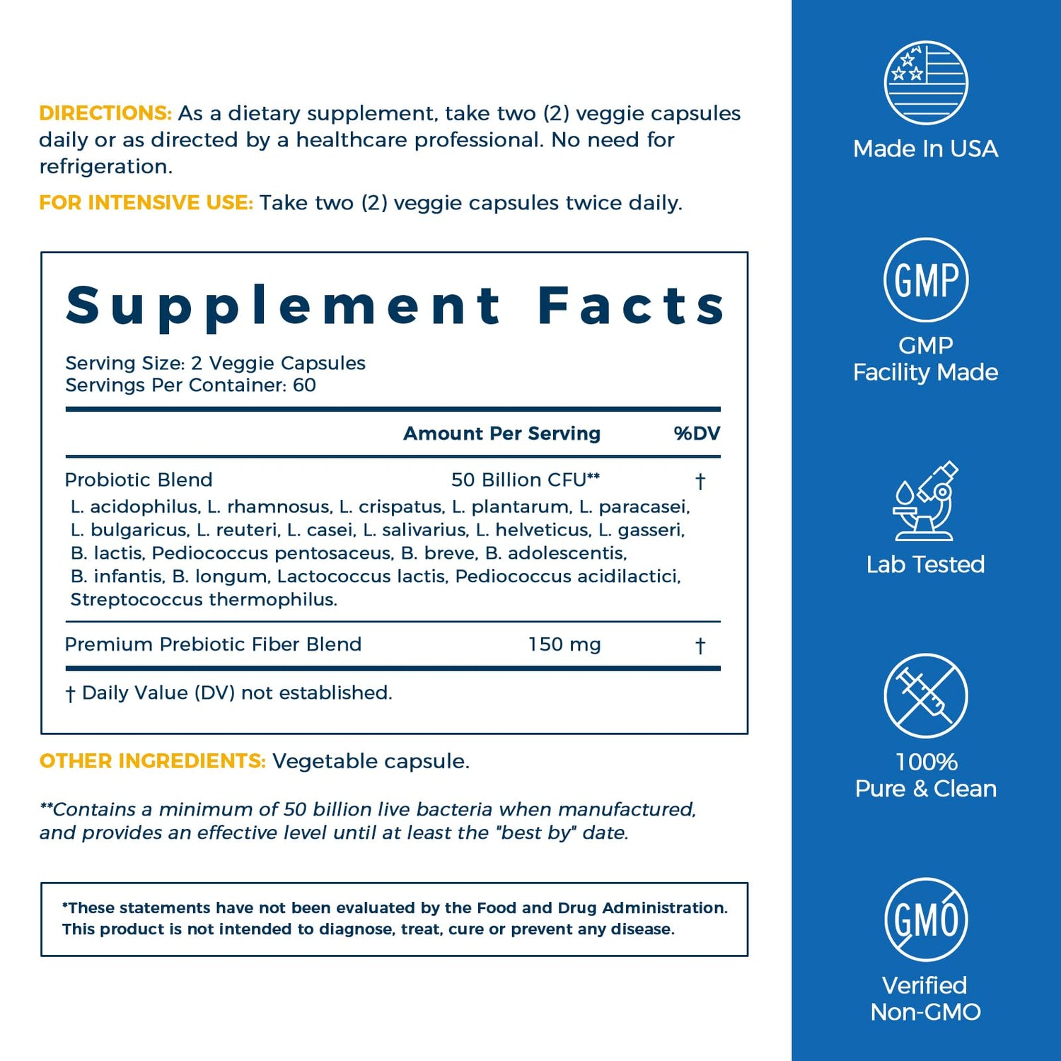 - ★100% Natural, Non-GMO, Gluten Free★ NewRhythm 50 Billion Probiotics is Formulated with 100% Natural Ingredients and Independently Tested in 3rd Party Labs in USA. Our Probiotics Supplement is Verified NON-GMO, Gluten Free and Verified Free of Sugar, Soy, Yeast, Egg, Wheat, Corn, Peanuts, Fish, Shellfish, Magnesium Stearate, Artificial Ingredients, Fillers, Binders, Preservatives.