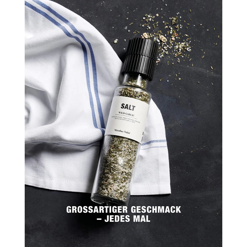 Nicolas Vahe Sea Salt with Wild Garlic, Ceramic Salt and Herb Mill, French Sea Salt in Danish Design