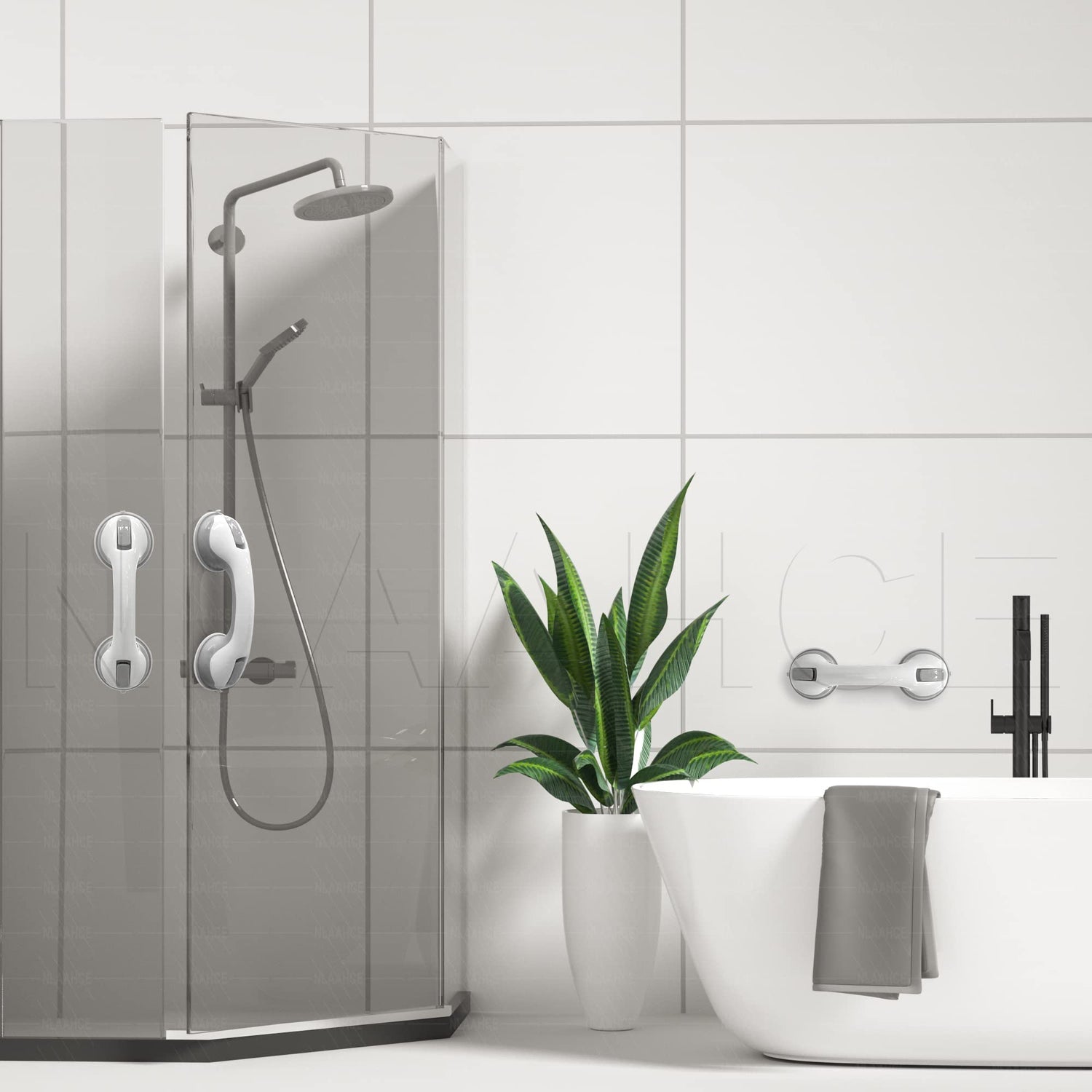 NL'AAHCΓ Grab Bars for Shower Heavy-Duty (2Pack) 12-Inch ADA Compliant Grab Bar for Seniors Shower Handles for Elderly Suction Handicap Safety Handrail for Bathroom Bathtubs Toilet Tiles Glass
