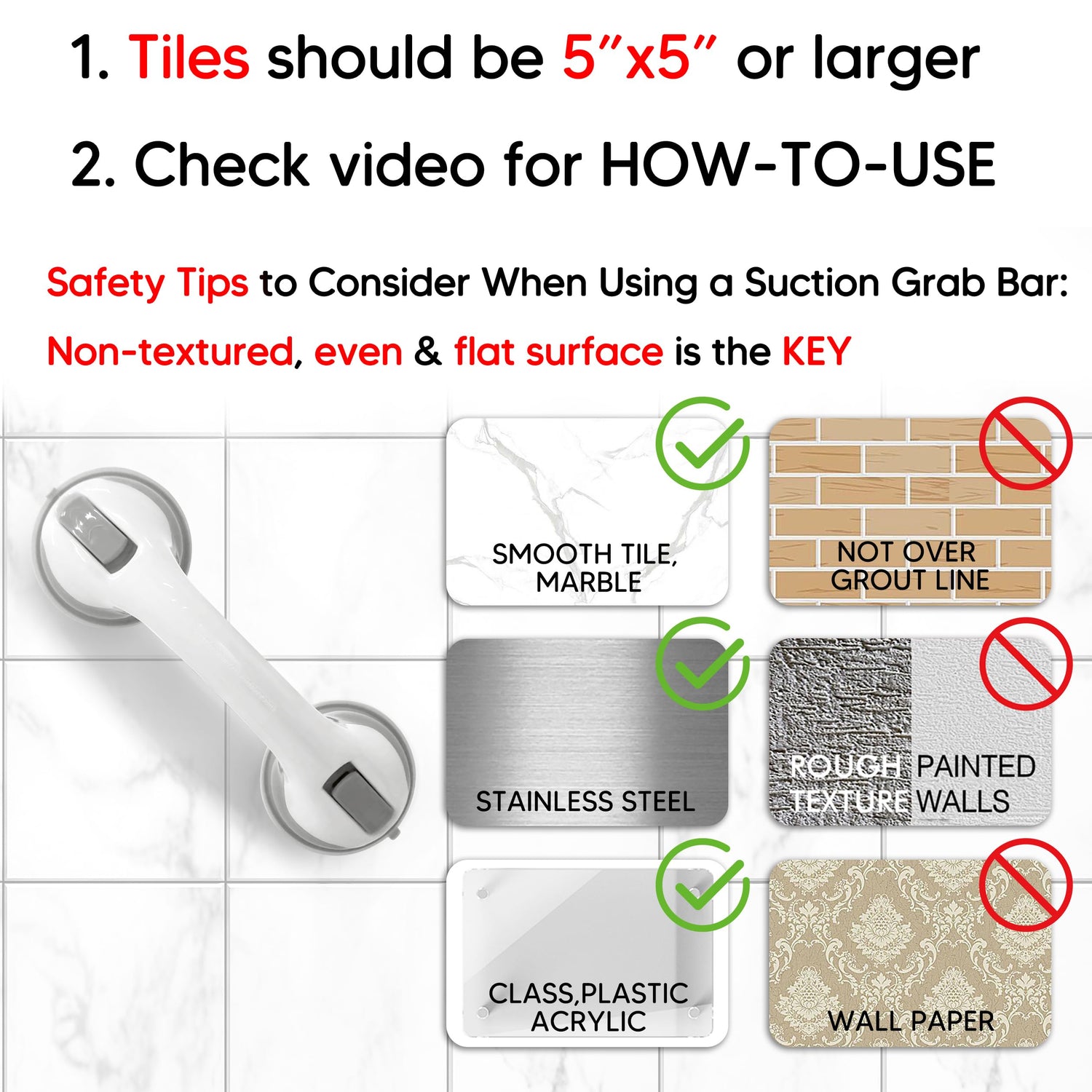 - 3. πͺππ¬π¦ π§π’ ππ©π’ππ πππ‘πππ₯: Balance assistance only, not designed for full body weight leverage. Do not apply over a grout line. Do not work on painted walls & porous-texture tiles.