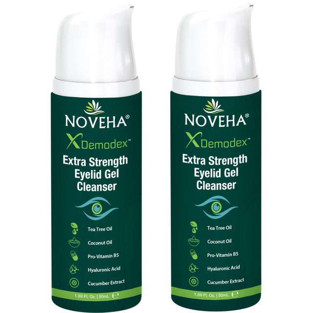 NOVEHA Demodex Extra Strength Eyelid Gel Cleanser - for Demodex, MGD and Dry Eye with Pro-Vitamin B5, Tea Tree Oil, and Hyaluronic Acid - Gentle Cleansing, Soothes Itchy Eyelid - 50mL (2 Pack)