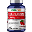 NusaPure Berberine HCI 20:1 Extract, 220 mg Equivalent to 4,500mg - 200 Veggie Caps - (Vegetarian, Non-GMO, Vegan)