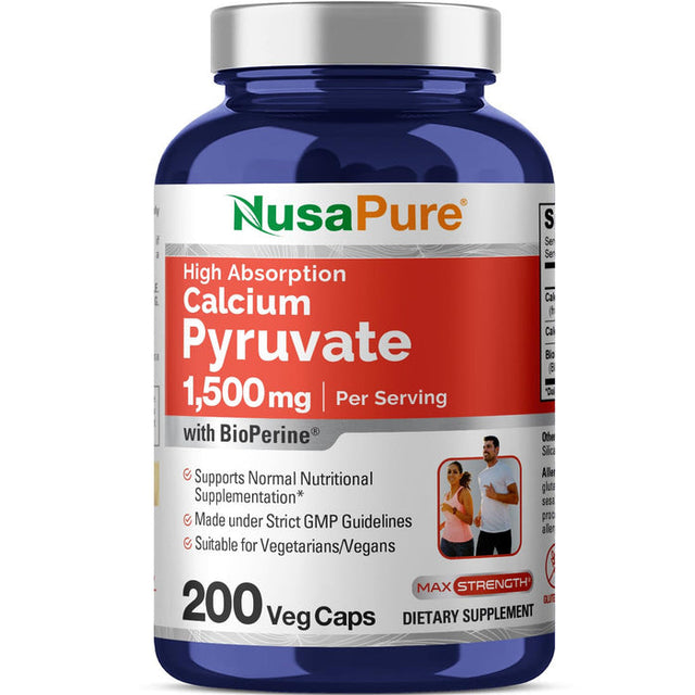 NusaPure Calcium Pyruvate 1500mg 200 Vegetarian Caps (Non-GMO, Gluten Free) - 750mg per caps