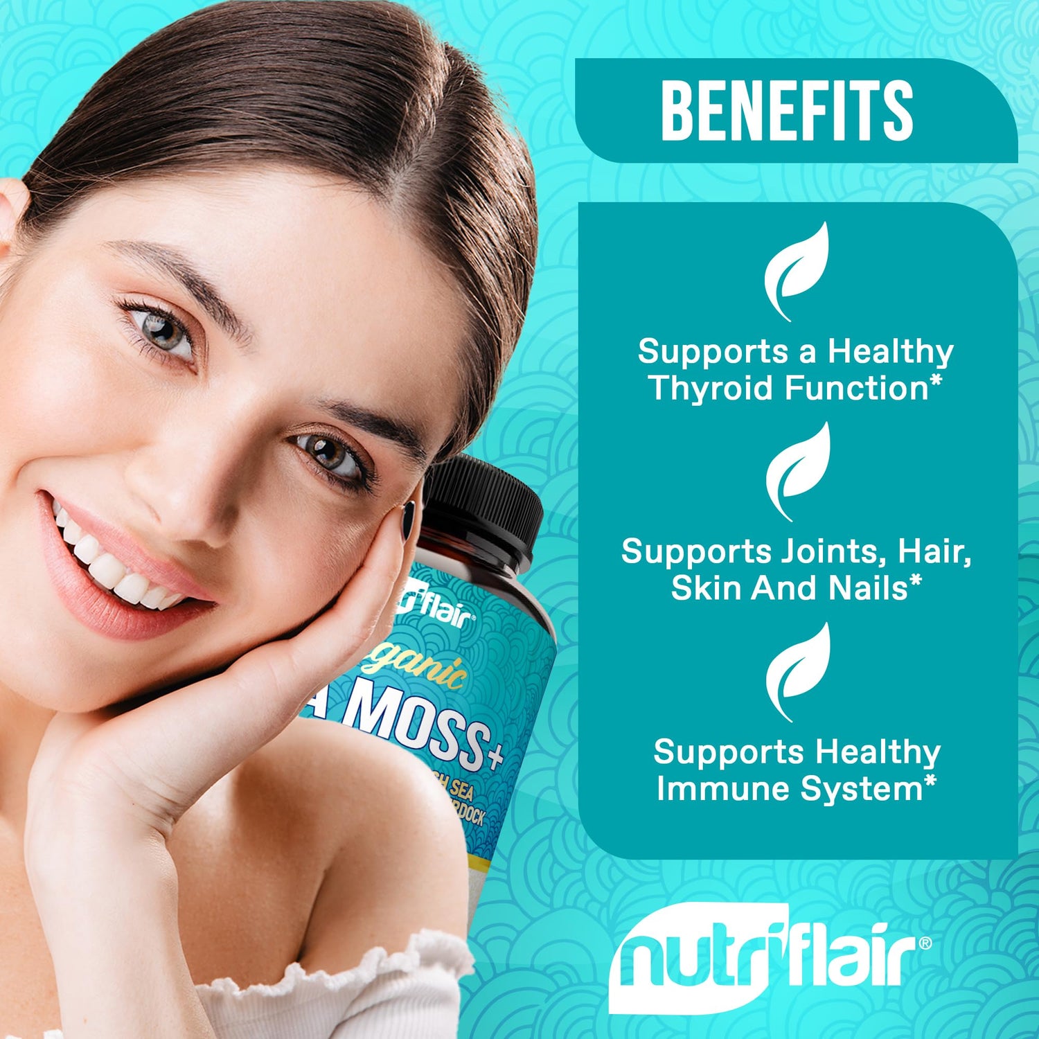 - Trusted Brand - Your Satisfaction is Assured, if our Sea Moss Extract Pills do not bring noticeable value to you and you don't absolutely love them, your purchase is on us. No Questions Asked. Our world-class customer service wants you to be satisfied with your purchase. Absolutely no risk; The bottle comes with the NutriFlair Satisfaction Pledge for 30 days. Have this all-mighty thyroid support algae supplement and health protector by your side and support your immune, skin, and joints