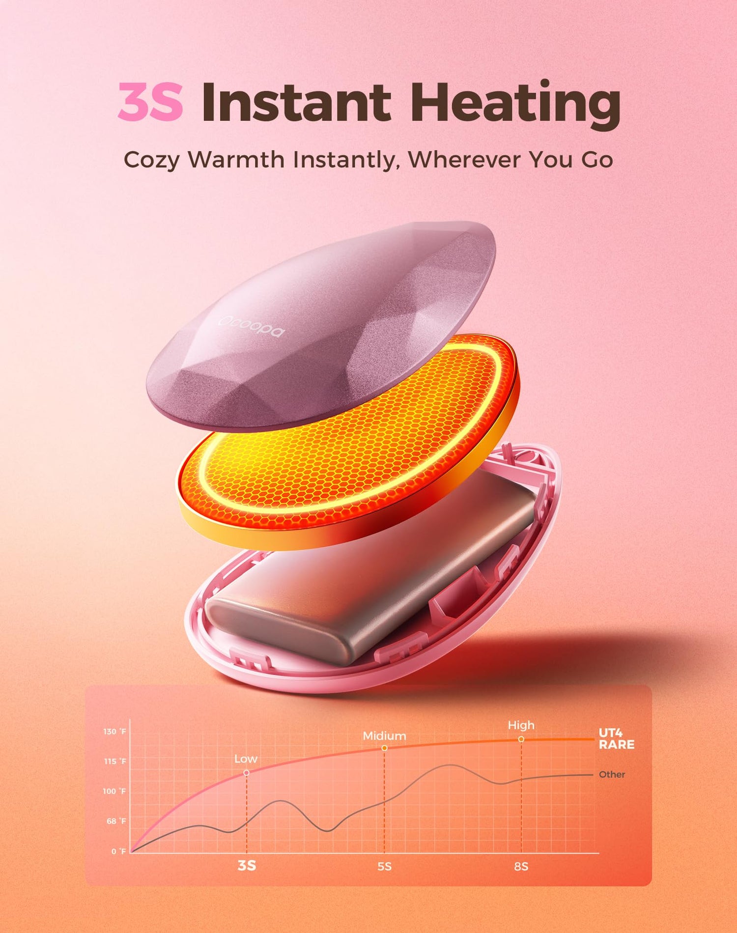 - ✨OCOOPA First Hand Warmer Designed Just for Women: Meet the UT4 Rare — where elegance meets everyday practicality; With its unique diamond-inspired design, this hand warmer doubles as a standout accessory; Durable, vibrant, and silky-smooth to the touch, it's the perfect gift for women who value style, warmth, and comfort in their daily lives