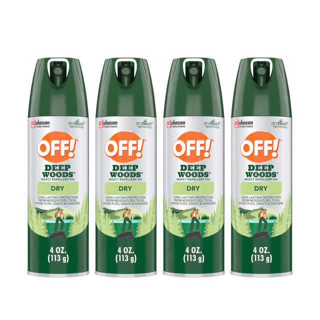 - Four 4 oz cans of OFF! Deep Woods Insect Repellent Aerosol protect against mosquitoes