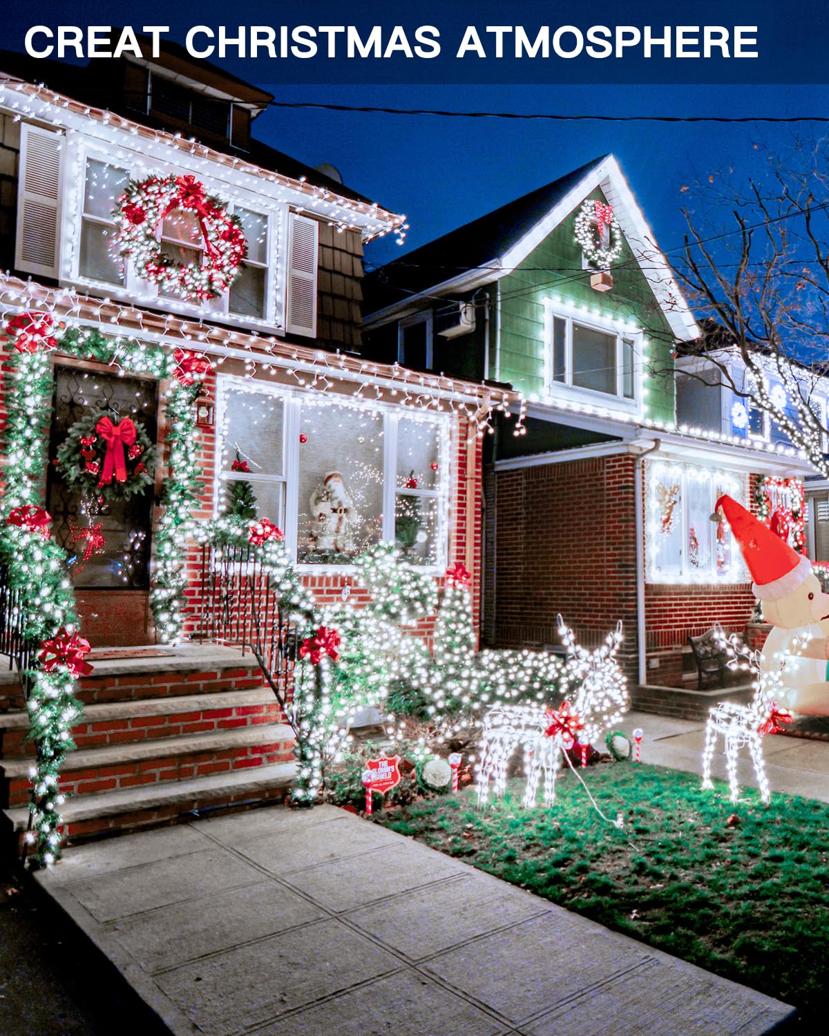 Ollny Christmas Lights Cool White, 600LED 197FT Christmas Tree Lights IP67 Waterproof, Plug in Fairy Lights with Remote 8 Modes Timer, Xmas Light for Outdoor Indoor House Holiday Decor