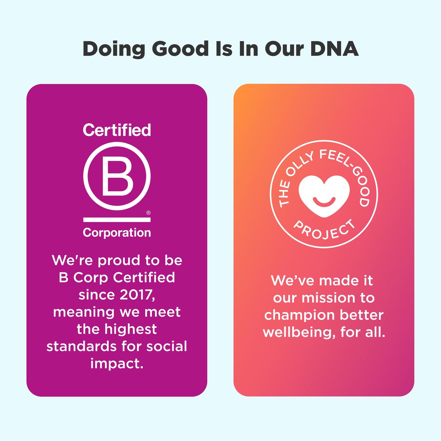 - FIND MORE OLLY GOODNESS: We create products that are just as effective as they are delightful—gummies, multivitamins, premium softgels and more ways to help you feel happy inside out