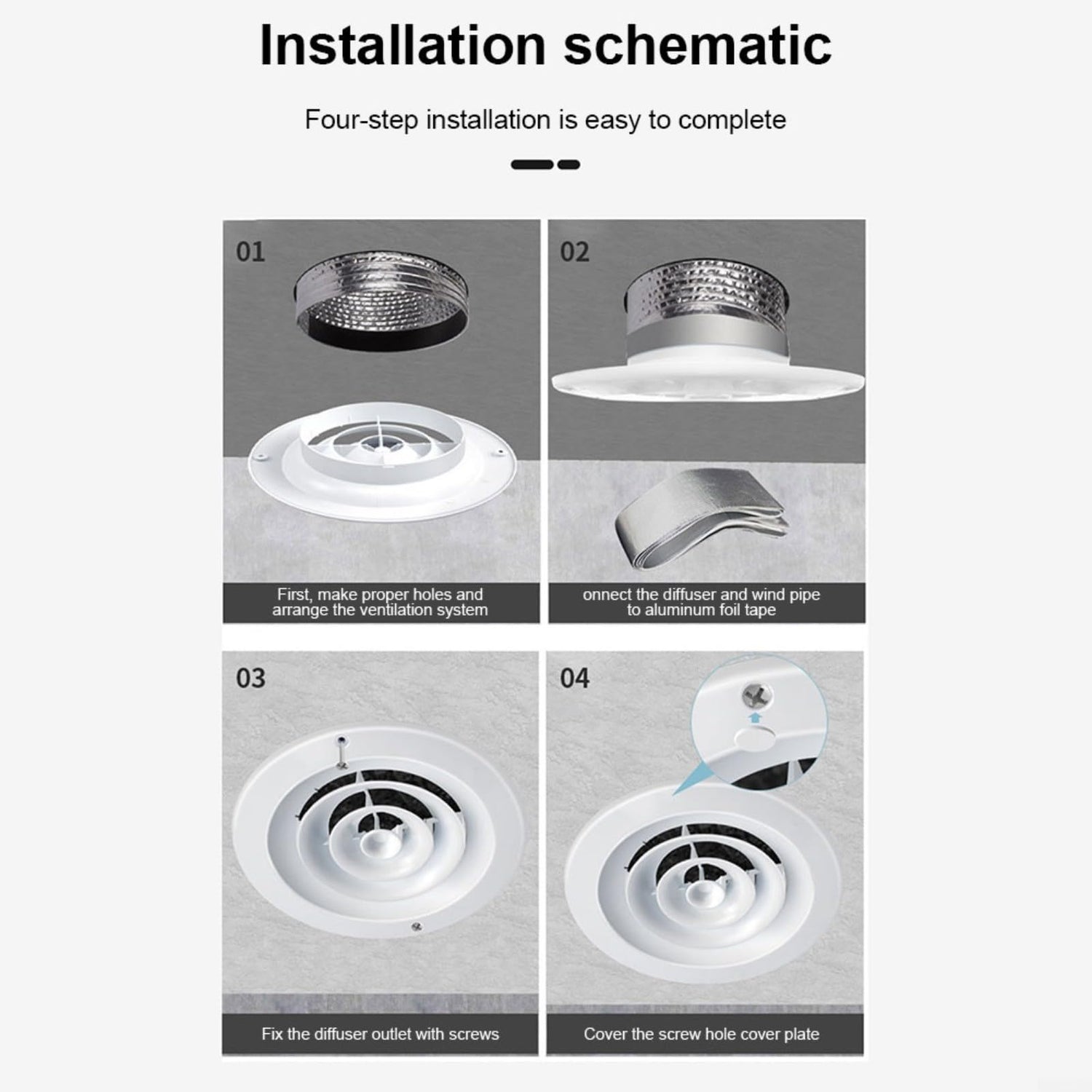 - 【Easy Installation】- This air vent can be easily mounted on the wall or ceiling, making installation a breeze. Whether you're a DIY enthusiast or a beginner, you'll have no trouble setting it up and enjoying its benefits in no time.