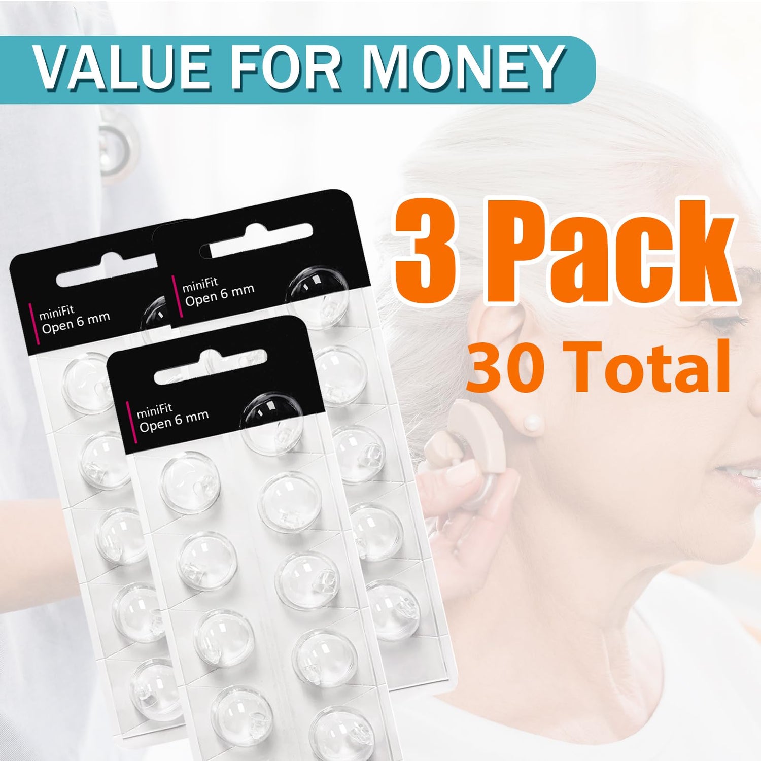 (Open Vent 6mm) Hearing Aid Domes for Oticon Minifit, Oticon Ear Caps Replacements Parts Accessories Domes for Oticon Hearing Aid Supplies Cleaning Kits(30 Pcs)