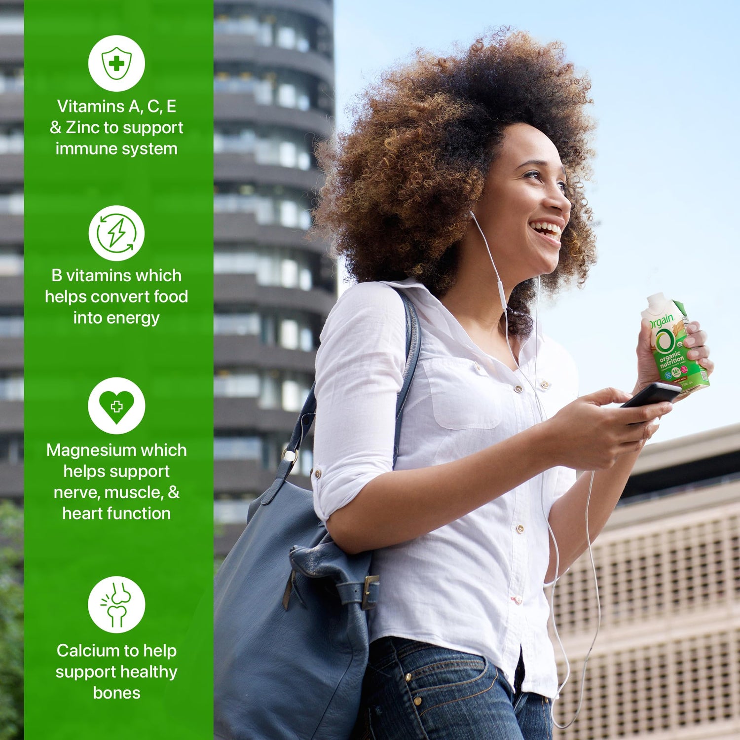 - CLEANER INGREDIENTS: Orgain Nutritional Shakes serve up complete nutrition including 16g of organic grass-fed protein, 1g of dietary fiber, 20 vitamins and minerals, 10 Organic fruits and veggies (including Acai, Spinach, Kale) & 250 calories per serving