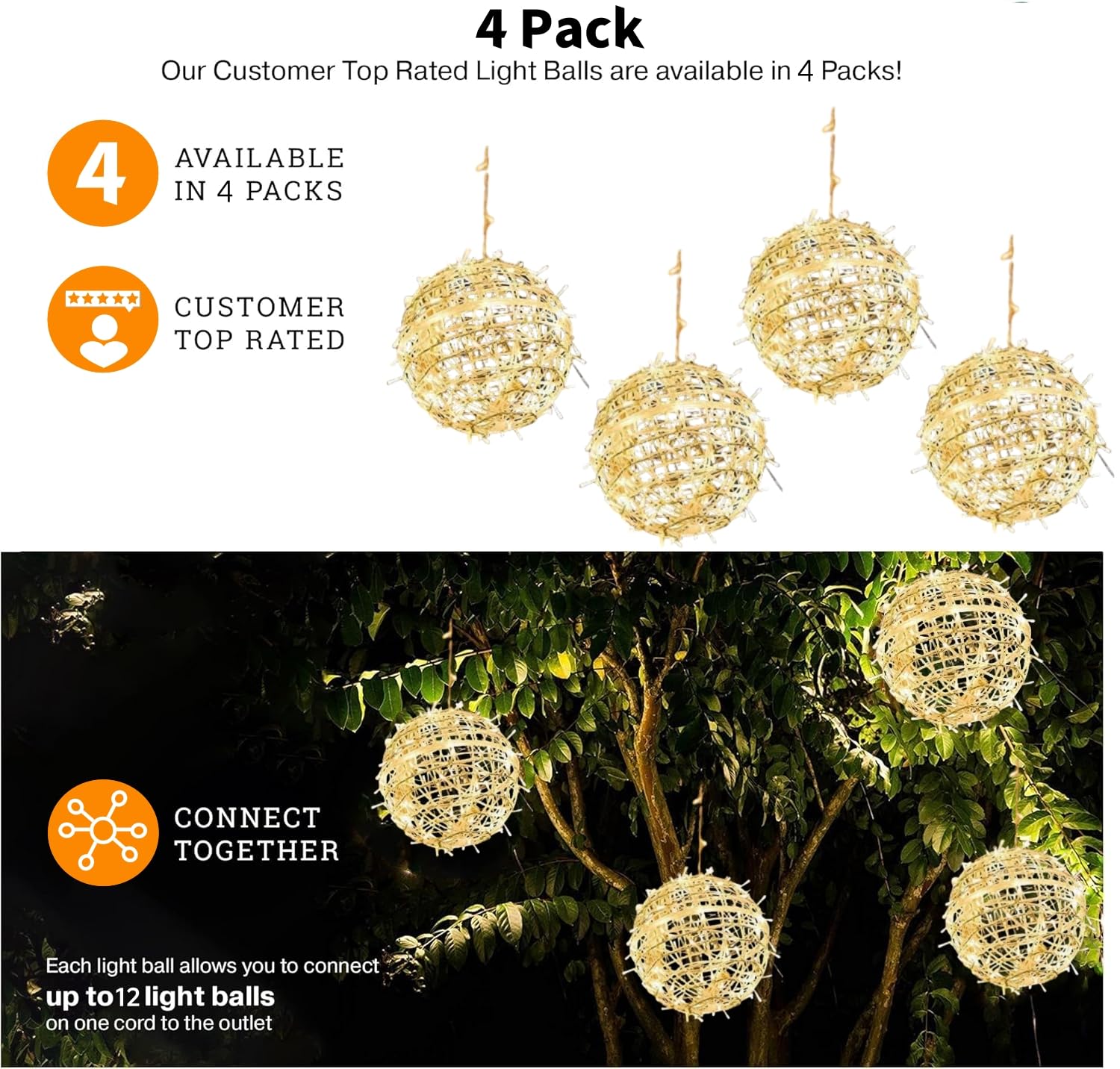 Outdoor Christmas Balls Lights 4 Pack Hanging 7.9" LED Garden Sphere Tree Lights 8 Modes Waterproof Glow Globe Lights with Memory Timer Plug for Party Yard Porch Eave Patio Xmas Decorations-Warm White