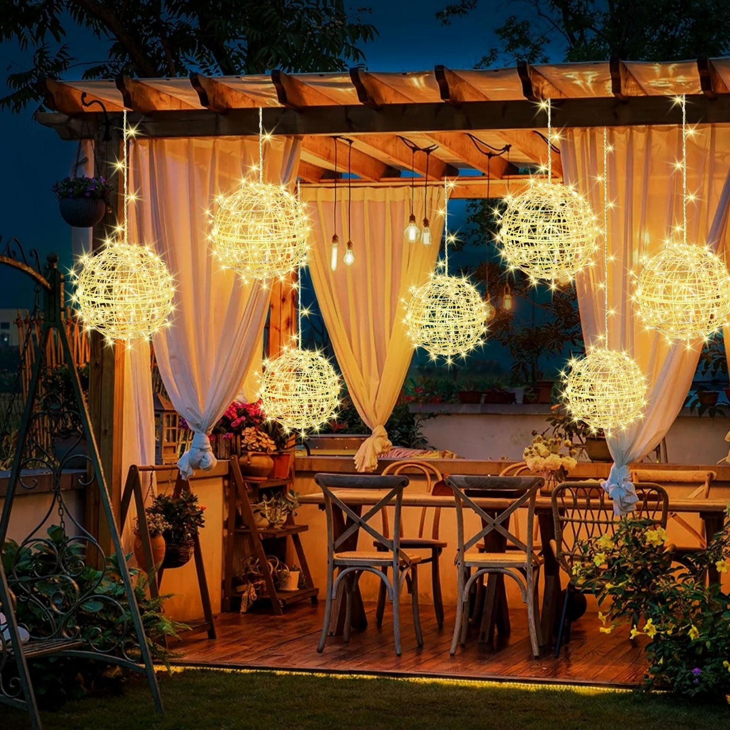 - šćChristmas Outdoor Decorations Lightsć- A string of garden globe lights with 4 luminescent balls, each measuring 7.9 inches in diameter. Each ball features 46 LED bulbs, with a 2.62ft drop length for each ball and a 3.28ft gap between two balls, 24.6ft extension cord. SenLuKit sphere lights will make your house shine the brightest on street.