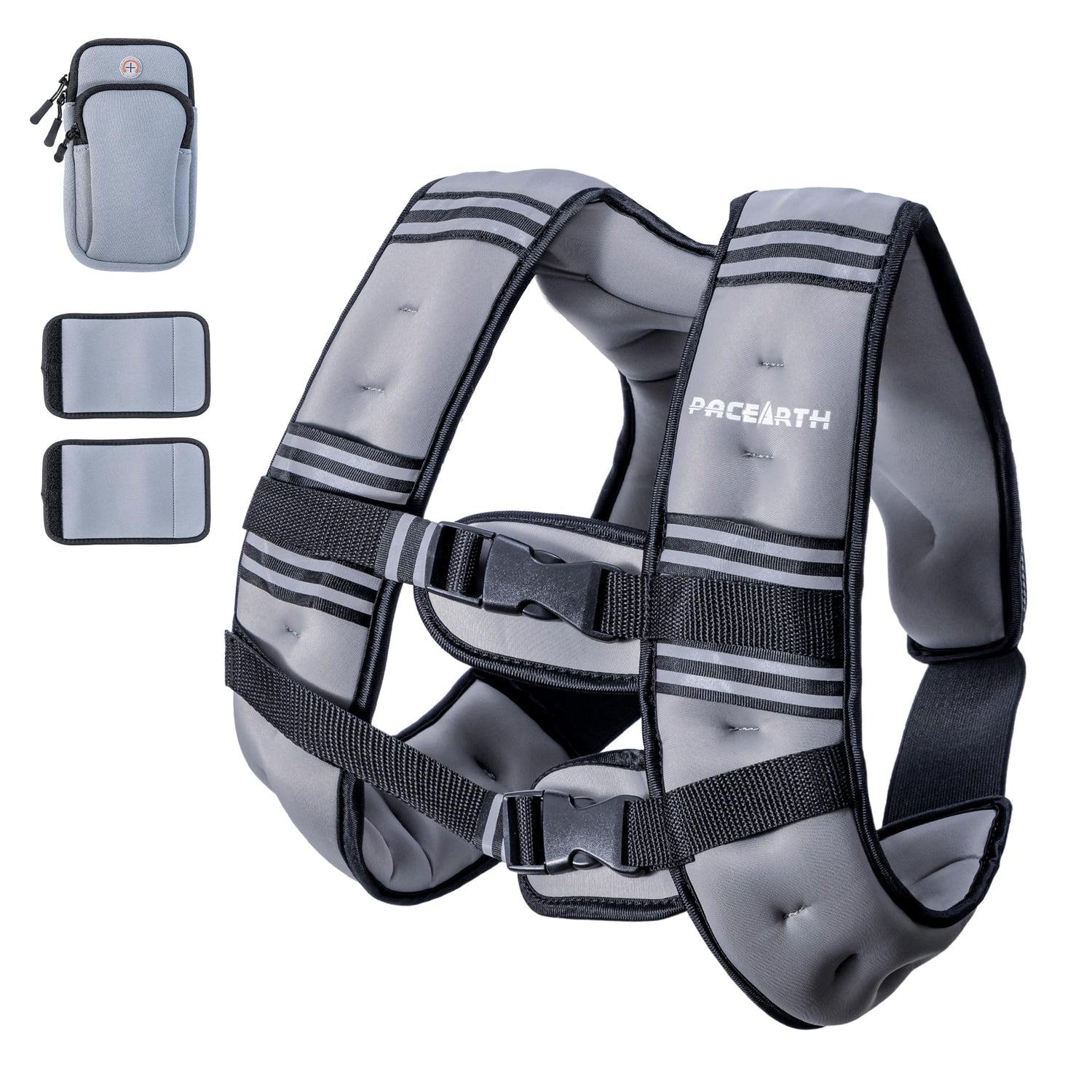 PACEARTH Weighted Vest,4lb/6lb/10lb/12lb/16lb/20lb/25lb/30lb Weight Vest with Reflective Stripe, Body Weight Vests Adjustable for Men, Women Workout, Strength Training, Running, Walking, Jogging