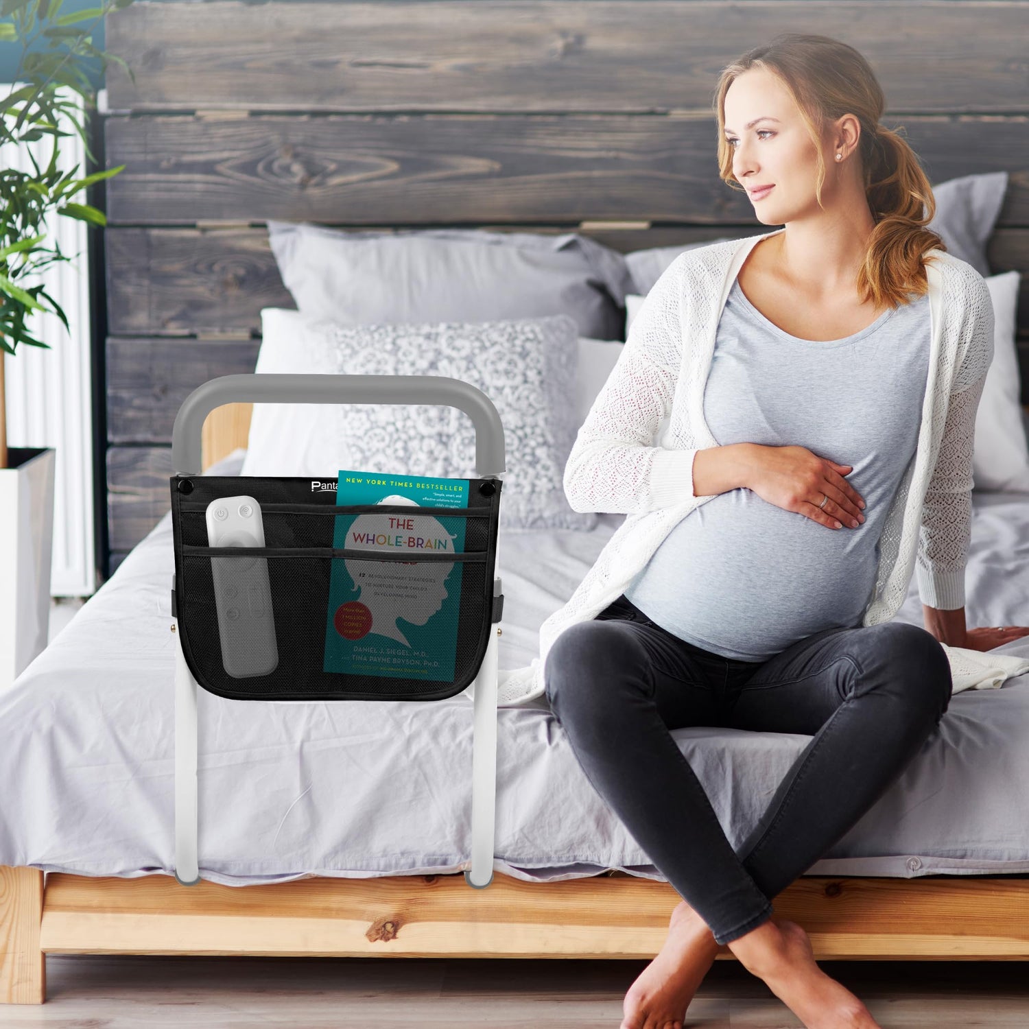 Panta Bed Rails for Elderly Adults, Adjustable Bed Assist Bar for Seniors, Medical Bed Safety Rail with Storage Bag and Fixing Strap, Portable Bed Cane Fit King, Queen, Full, Twin, Medium, Grey