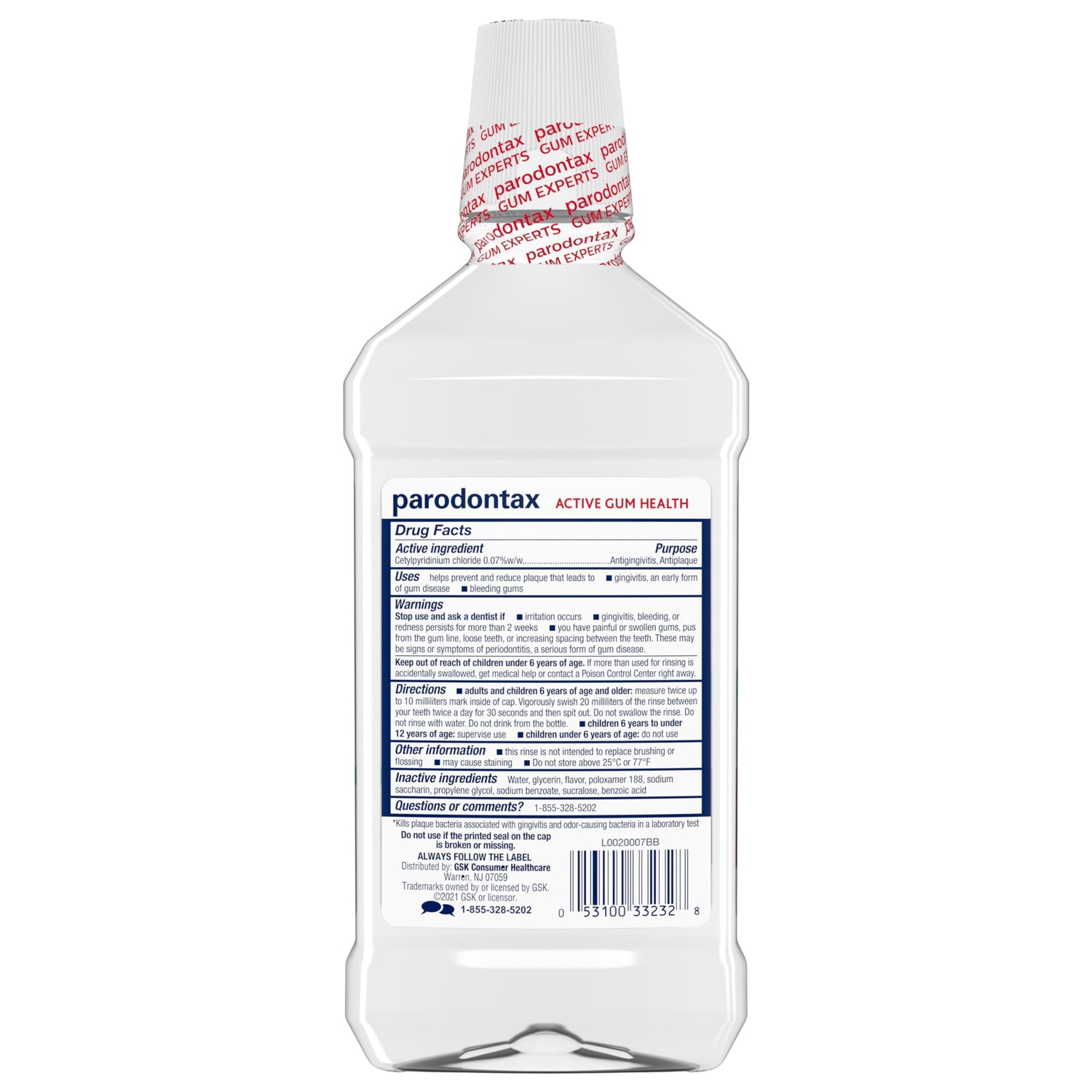 - Three 16.9 fl oz bottles of Parodontax Active Gum Health Mouthwash, Antiplaque and Antigingivitis Mouthwash, Clear Mint