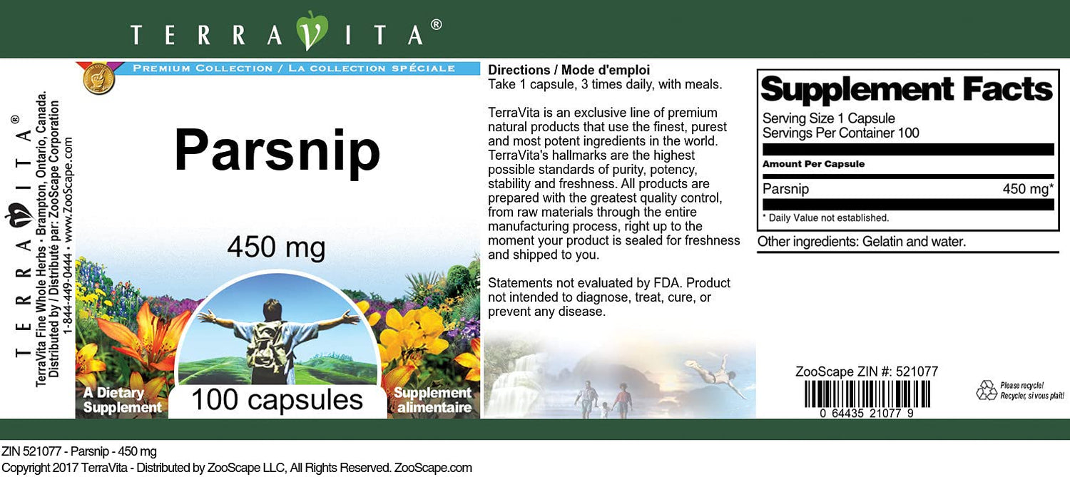 - Parsnip - 450 mg (100 capsules, ZIN: 521077)