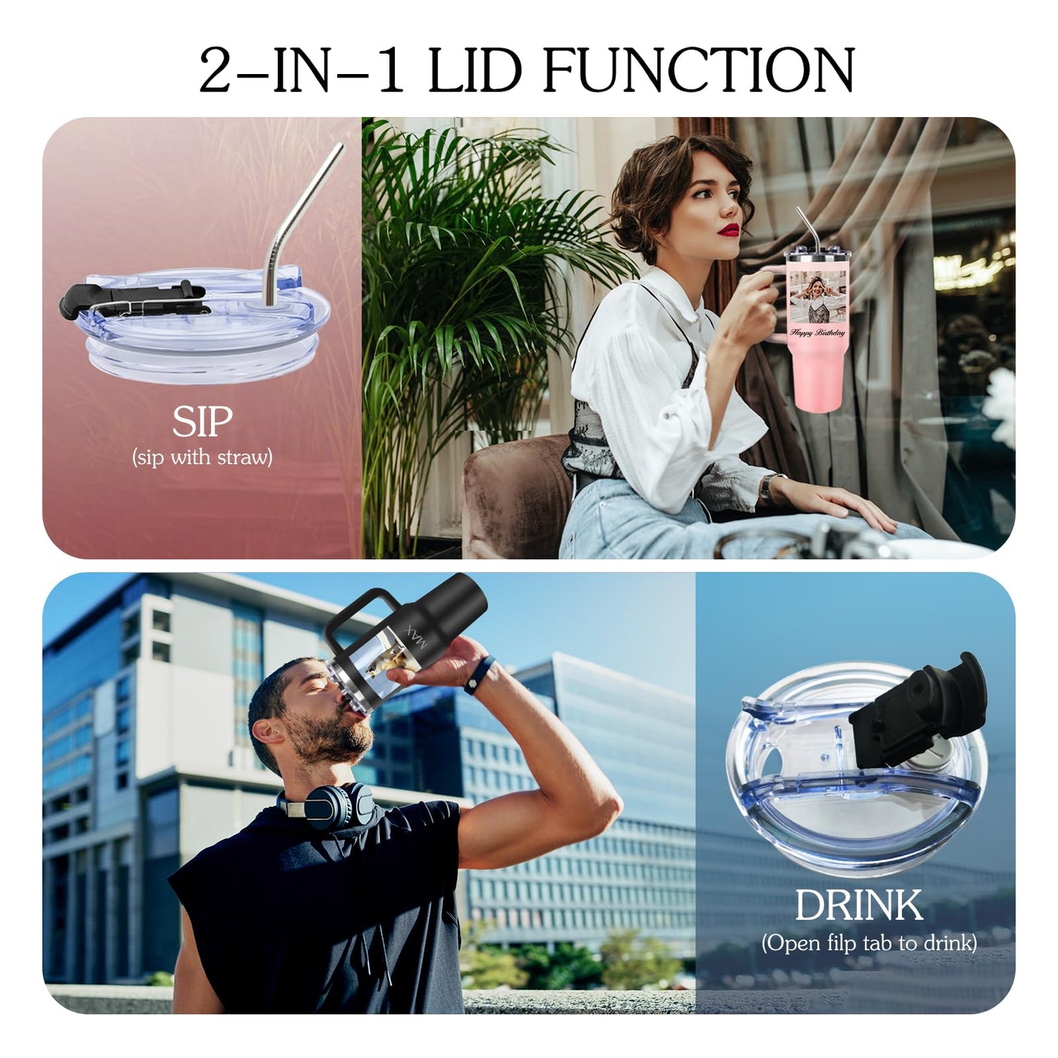 Personalized 40 oz Tumbler with Handle and Straw, Custom Tumbler with Picture, Logo, Text, Stainless Steel Travel Coffee Mug Cup, Personalized Gifts For Women Men Birthday Anniversary Christmas Gifts