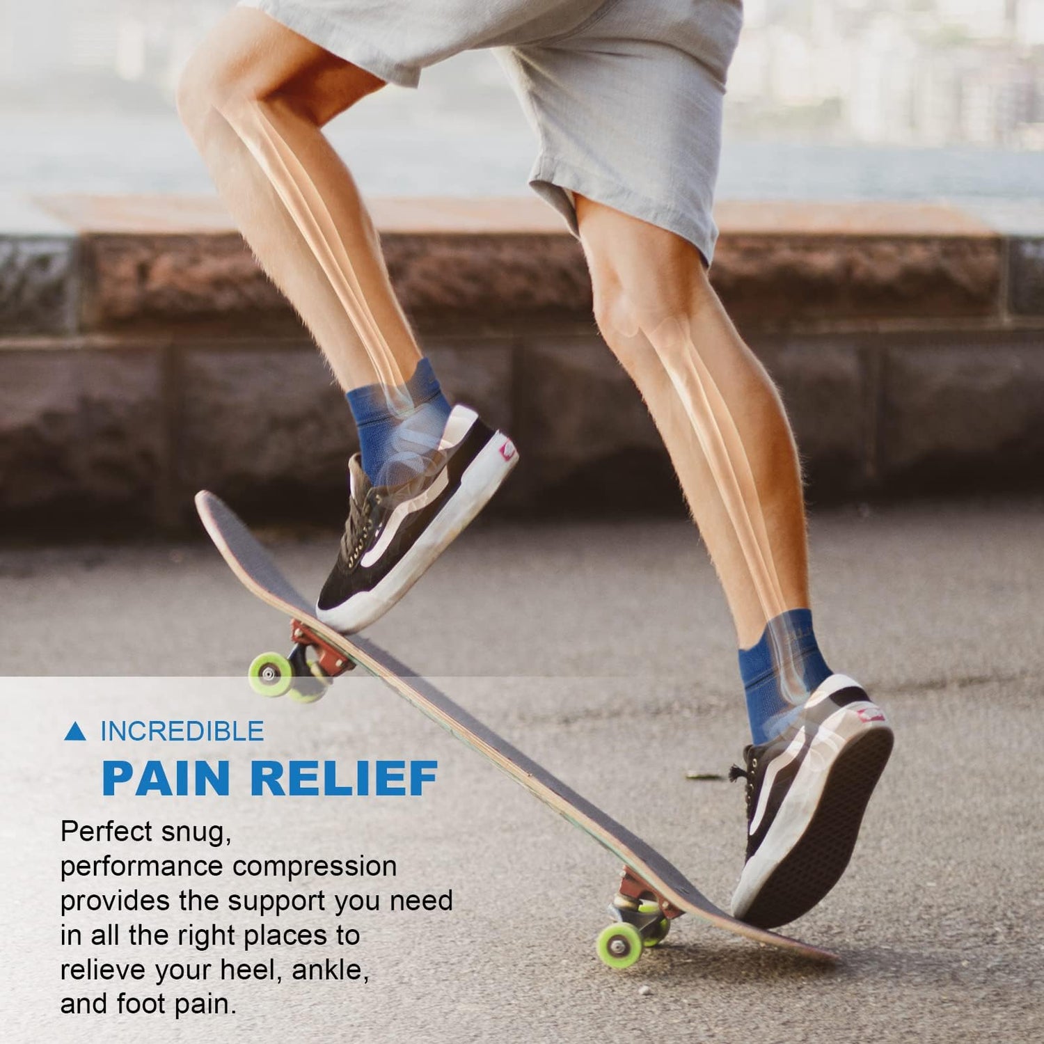 - FAST PAIN RELIEF:Our compression foot sleeve helps relieve foot pain by stretching tendons and relieving pressure on the plantar fascia. Including relief of plantar fasciitis, arch pain, and heel pain. They can also improve foot circulation, stabilize ankle joint, aid in recovery from edema and heel spurs, and helps stabilize feet and prevent injuries.