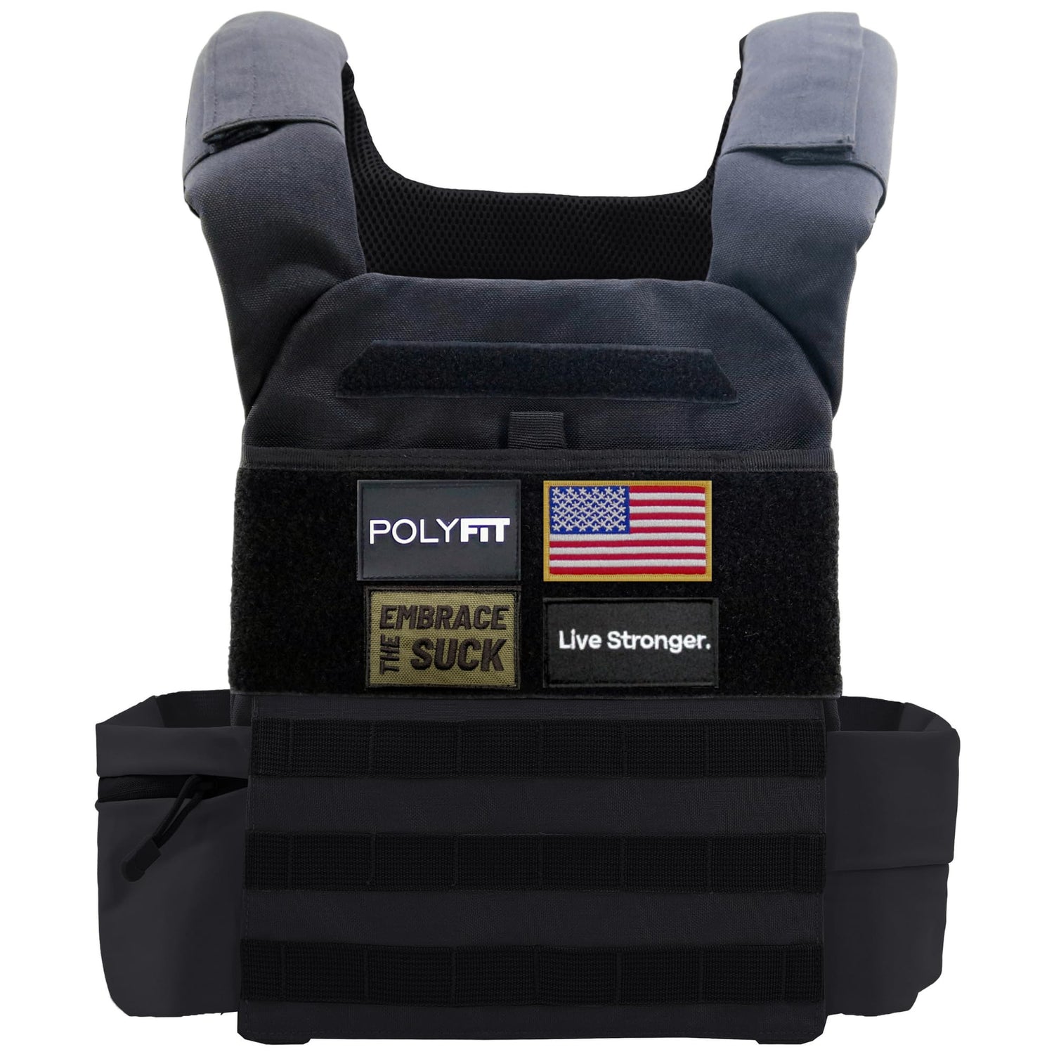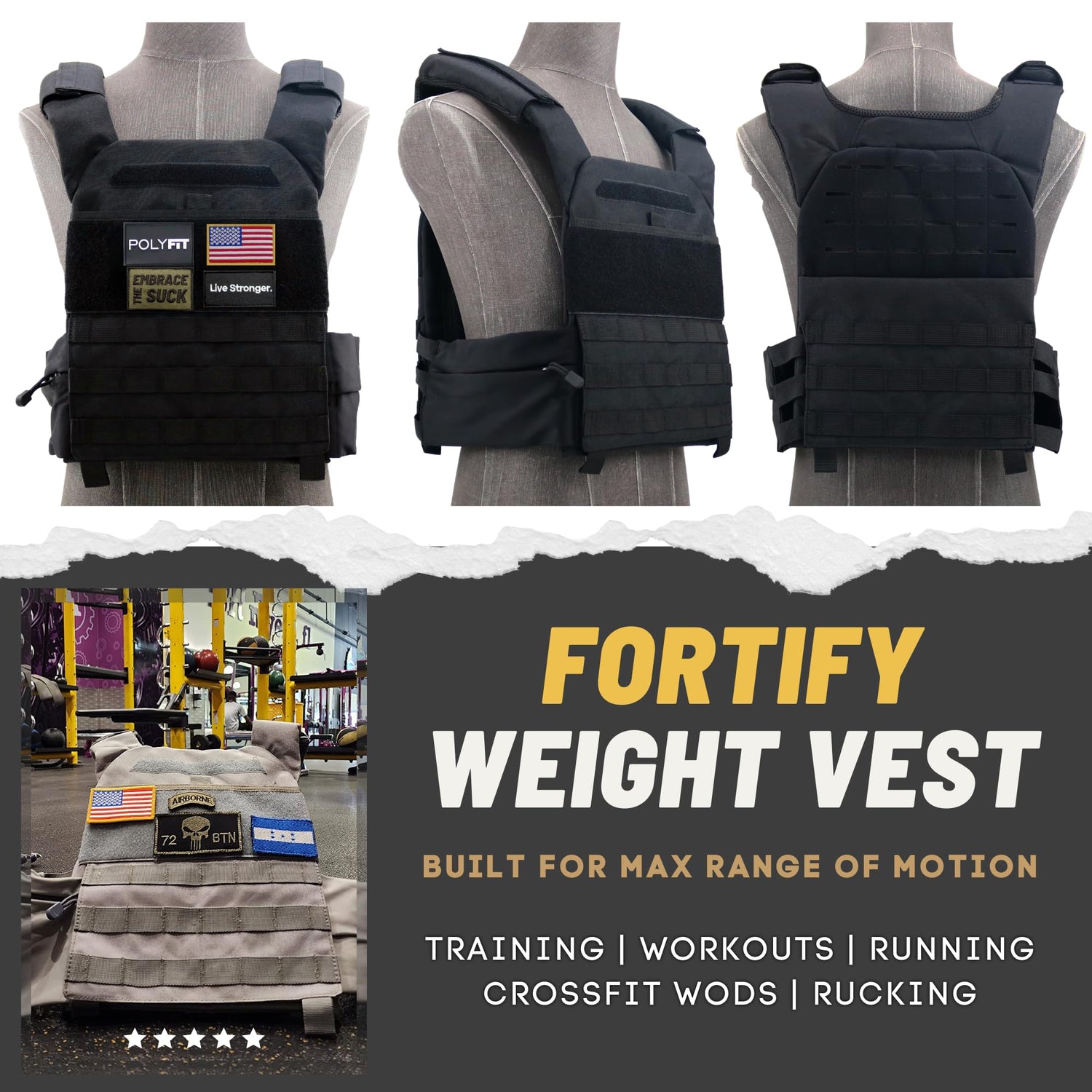 Polyfit (Fortify) Weighted Vest for Strength and Endurance Training, Fitness Workouts, Running, WODs - BLACK