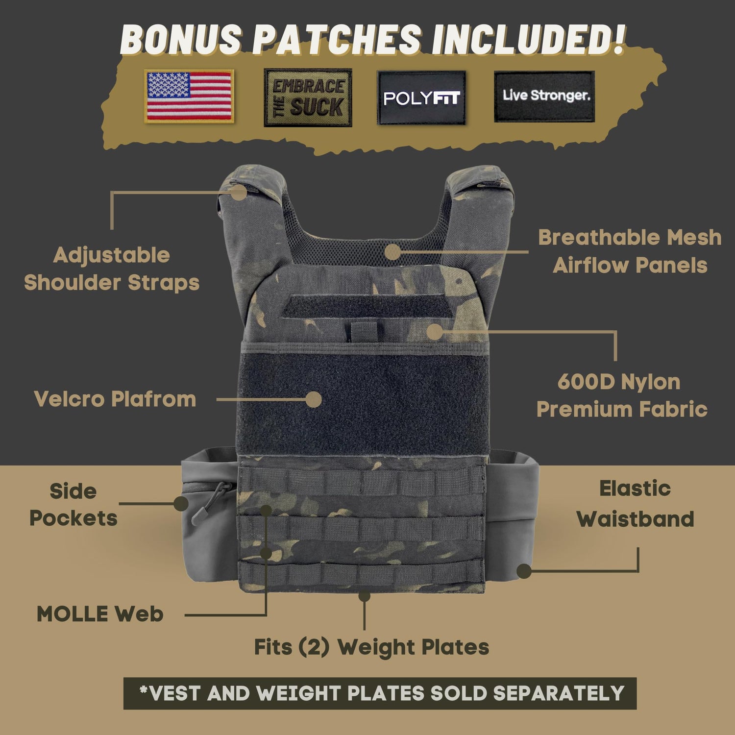 - Weight Vest Plates Sold Separately. For Fitness Use Only.