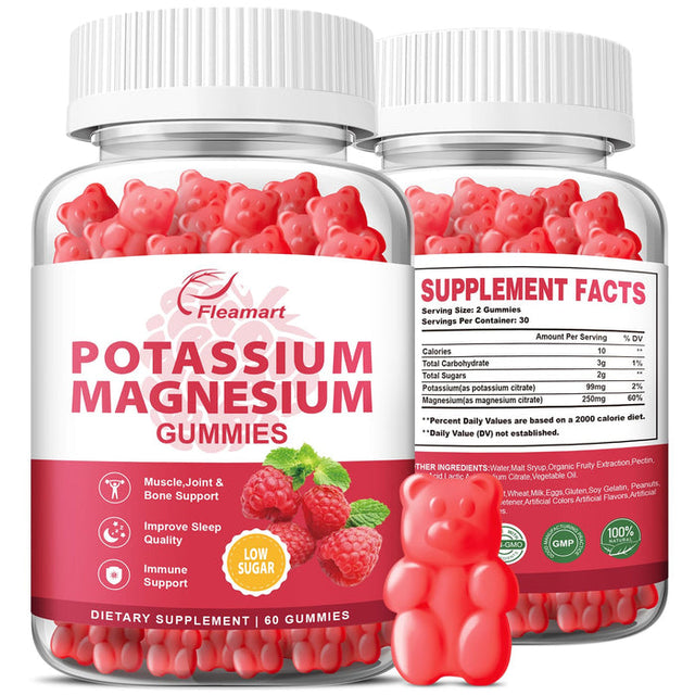 Potassium Magnesium Gummies Potassium Citrate 99mg Magnesium Citrate 250mg Magnesium Potassium Complex Supplement, Immune Support, Leg Cramps Muscle Health, 60 Raspberry Gummies