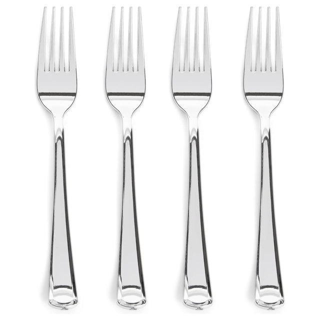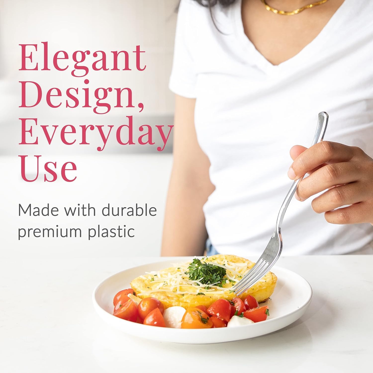 Prestee 300 Plastic Forks Heavy-Duty, Heavyweight Silverware Forks, Fancy Plastic Cutlery, Elegant Disposable Fork Pack, Bulk Disposable Flatware, Silver Fork for Christmas Holiday (Silver)