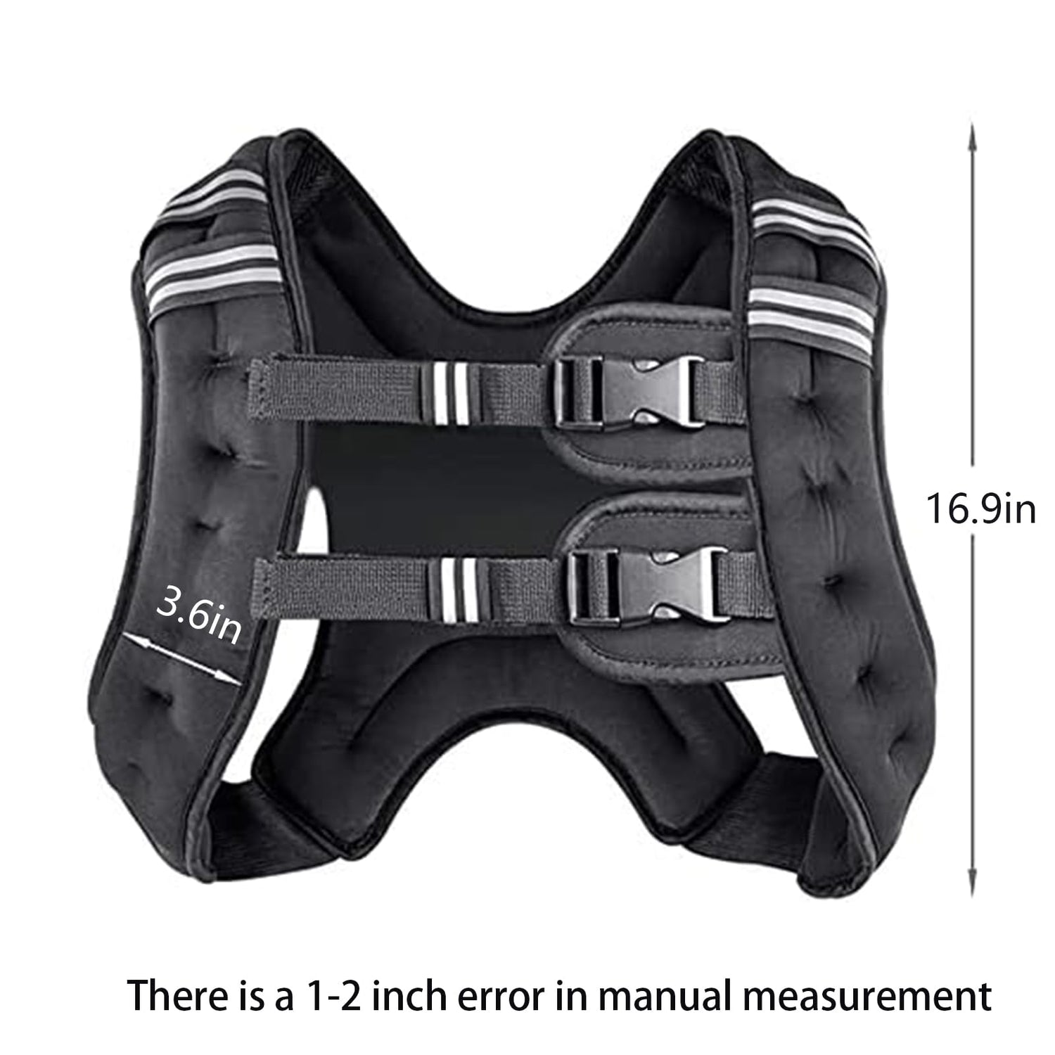 - DOUBLE ADJUSTABLE BUCKLE STRAPS & REFLECTIVE STRIPS - The integrated adjustable buckle strap is suitable for bust between 35~45 inchs; elastic edge of this weighted vest provides superior flexibility for workout, accommodating users of different sizes; reflective strips on both sides of the weighted vest keep you away from traffic accidents in all weather conditions(rain, fog, dark) at day or night