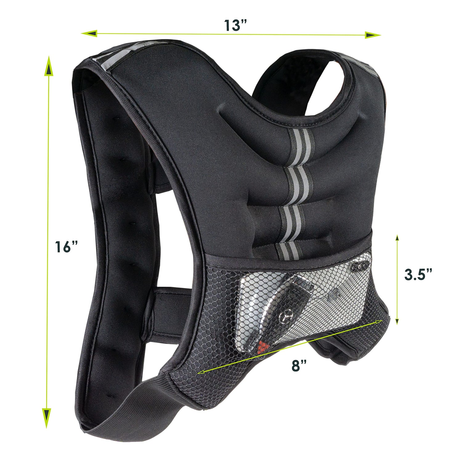 Details: The ProsourceFit Weighted Vest is a versatile way to enhance workouts at home, the gym or outdoors. Full body resistance training is now made convenient with a hands-free way to build muscle strength, stamina and bone density without the hassle of extra equipment. Use by itself during a cardio session, cross-training, calisthenics or simply incorporate with other equipment for extra muscle burn during strength training. Made of durable and soft neoprene, the weighted fitness vest is breathable and comfortable to wear for long periods of time. Adjustable top and bottom buckles allow for a snug fit no matter your height or body type. Weights in the vest are placed in secure pockets and are perfectly balanced so you can experience evenly distributed resistance on your body. The mesh back pocket provides extra storage space for workout accessories or personal items like keys or wallet for a truly hands-free workout. The sleek design of the weighted vest doesn't come with bulk and rests perfectly on your shoulders with a curved back design for the ultimate fit. For evening exercisers, reflective strips are located in the front and back of the weighted vest for safety. Suitable for men and women of all fitness levels or athletes, you can find your ideal resistance with the 5 weight options available - 6lbs, 8lbs, 10lbs, 12lbs or 20lbs.