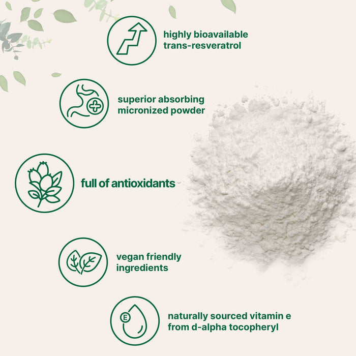 Pure Trans-Resveratrol Powder with Natural Vitamin E, 5 Ounce, 2 in 1 Formula, Micronized Powder for Better Absorption, Premium Resveratrol Supplement, Super Antioxidant, Vegan Friendly
