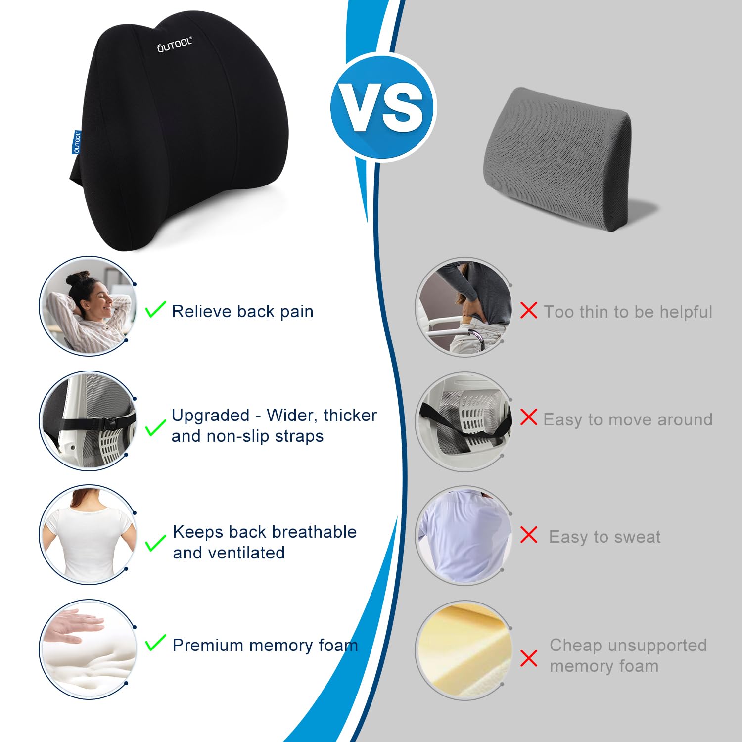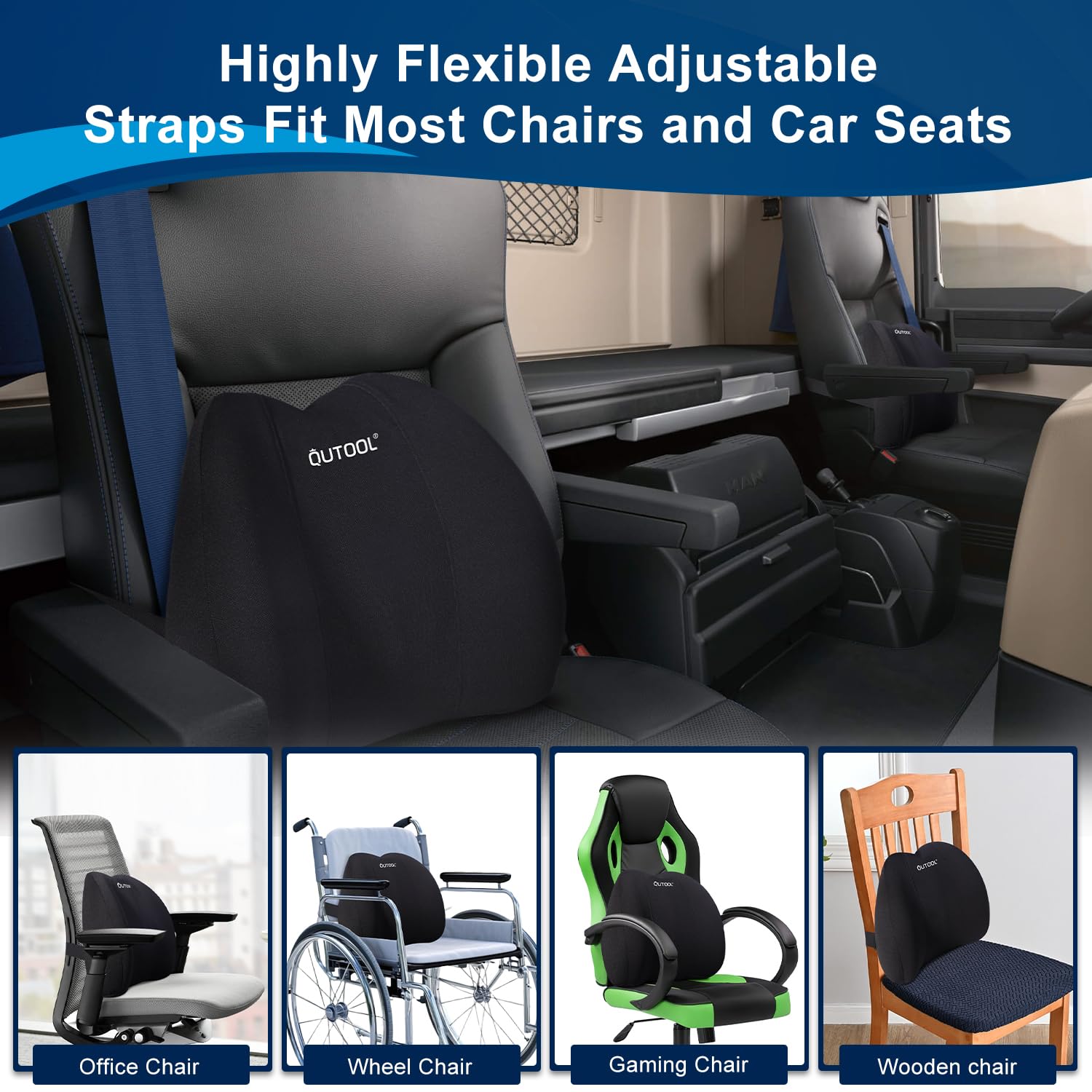 QUTOOL Lumbar Support Pillow for Office Chair, Memory Foam Low Back Support,Back Pain Relief, Ergonomic Large Back Cushion for Desk Chair,Gaming Chair,Adjustable Strap and Washable Cover