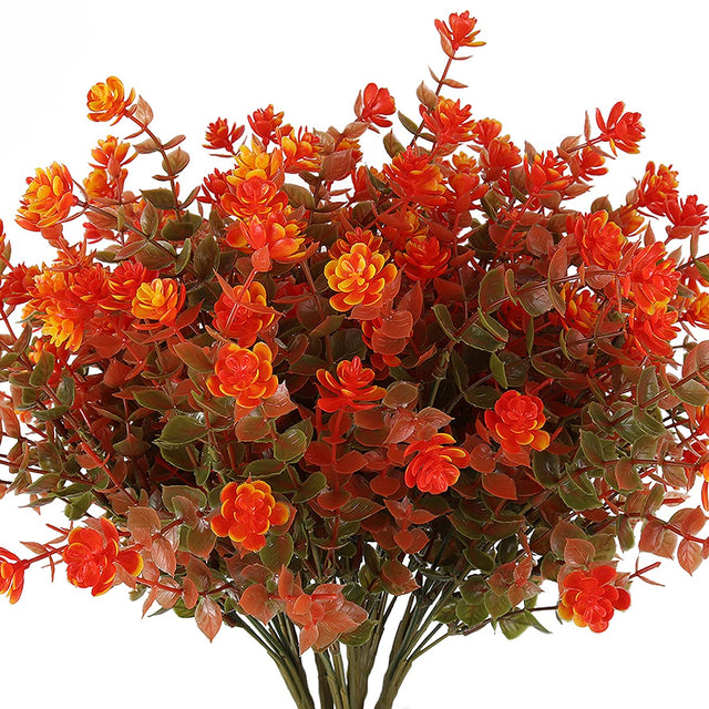 RECUTMS 8 Bundles Artificial Fall Flowers No Fade Faux Autumn Plants, Fake Indoor Outdoor Greenery Decorations for Thanksgiving Christmas Wedding Party Home Garden Fireplace Décor (Green Orange)