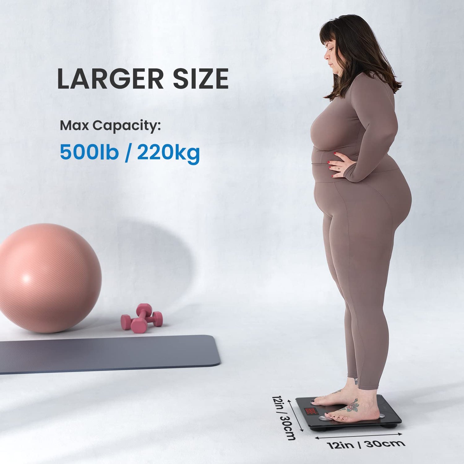 RENPHO Scale for Body Weight 500 lbs, Extra-High Capacity Smart Bathroom Scale with Ultra Wide Platform 12 x 12 inches, Body Fat Scale with Large LED Display, Health Monitor Sync App, Elis 1 L