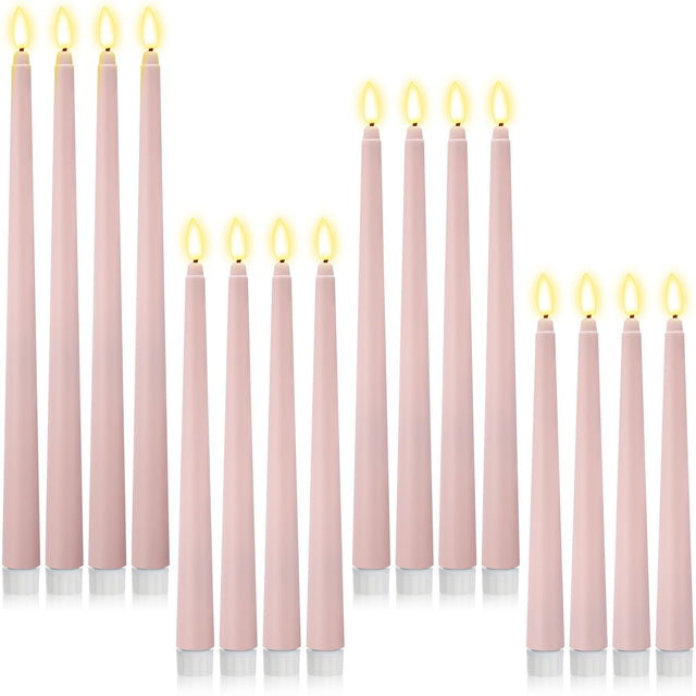 Rossesay 24 Pcs Flameless LED Taper Candles Battery Operated Candles 8.58'', 9.69'', 10.98'', 12.91'', 12.8'' Flameless Candlesticks Flickering for Halloween Christmas Church Wedding(Dusty Pink)
