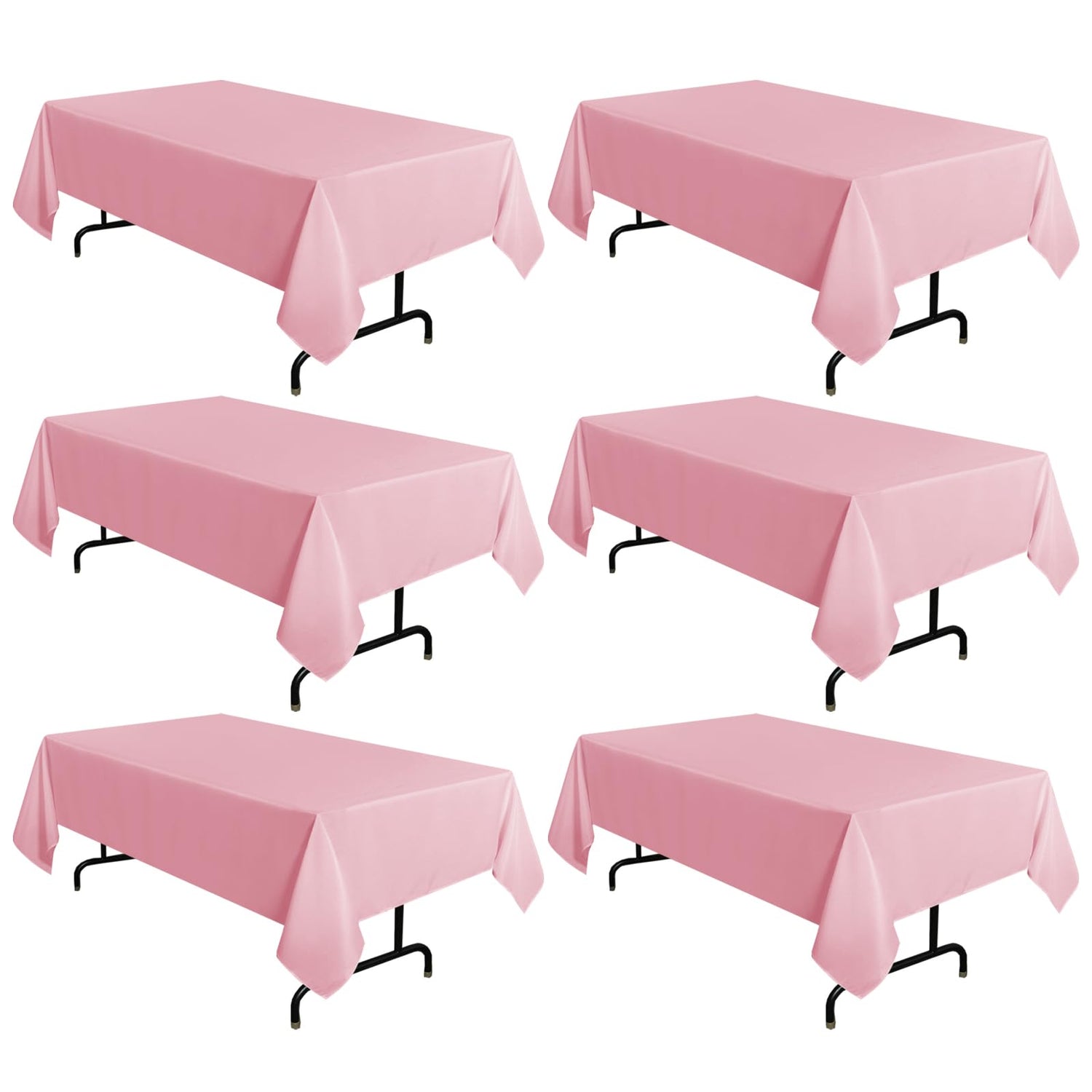sancua 6 Pack Pink Tablecloth 60 x 102 Inch, Rectangle Table Cloth for 6 Feet Tables - Stain and Wrinkle Resistant Washable Polyester Table Cover for Dining Tables, Christmas Buffet Parties