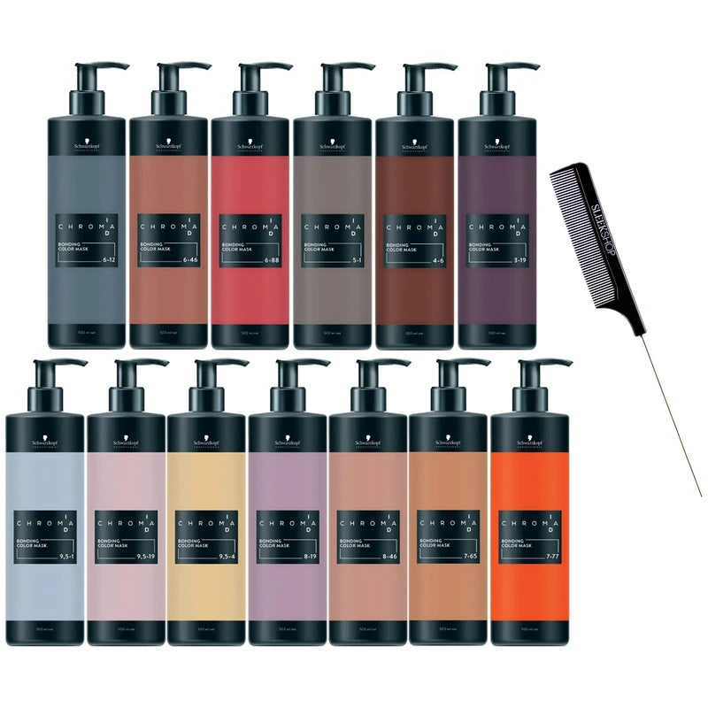 - This kit includes a quantity of (1) ChromaID Bonding Color Mask (please choose your color) and a quantity of (1) Sleek Steel Pin Rat Tail Comb for easy and precise application while providing separation of hair ! Provides professional results! Anti-Static Metal Pin can be used for sectioning, parting, and styling the hair when coloring or lightening!