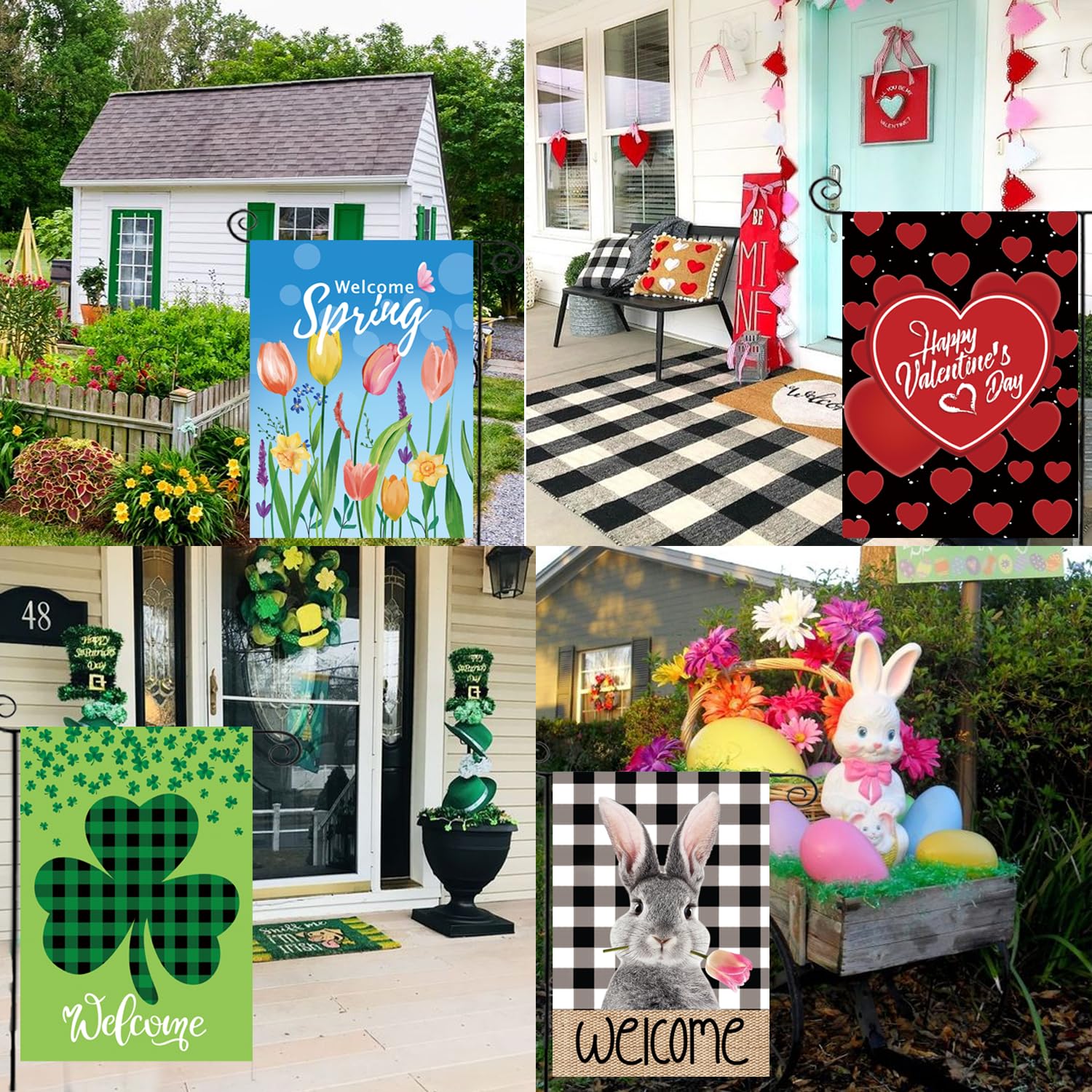 - 【Seasonal Garden Flag Package】Comes 12 Pack small garden flag set for every season, important holiday and family occasion: Spring garden Flag, Summer Garden Flag, Fall garden flag, Winter garden Flag, Valentine's Garden Flag, St. Patricks Garden Flag, Easter Garden Flag, Welcome Garden Flag, 4th of July Garden Flag, Halloween Garden Flag, Thanksgiving Garden Flag, Christmas Garden Flag. Our seasonal flags can meet your different needs to decorate your house and garden all the year!