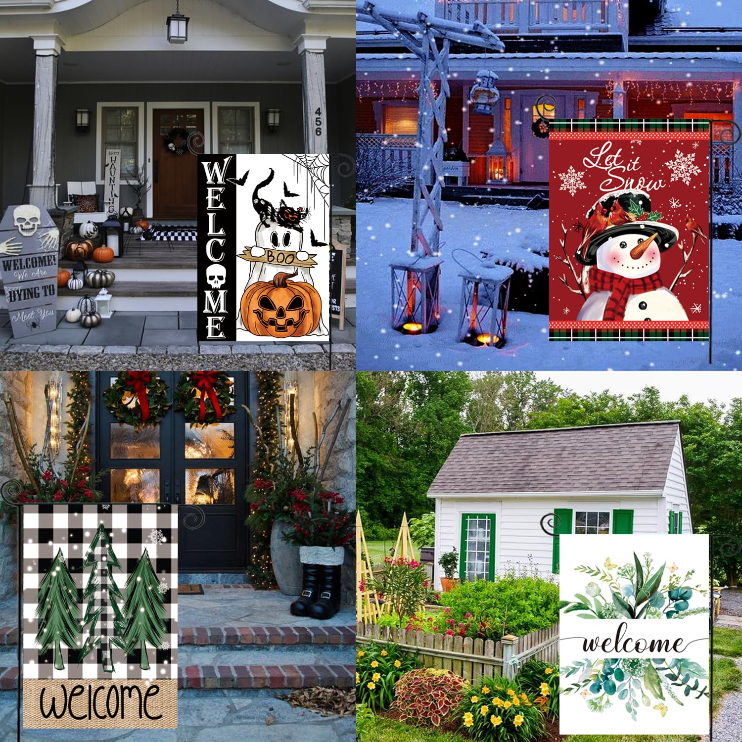 - 【Welcome Garden Flag Design】Our holiday flags design with classical seasonal elements, vibrant, colorful and adorable, which will make your house full of holiday atmosphere when placing in yard. Lovely gifts for the all seasons! Great gifts for your family and friends! Dress up your home yard, lawn or garden with these beautiful outdoor garden flags, celebrate with your loved ones, and be the envy of the neighborhood.