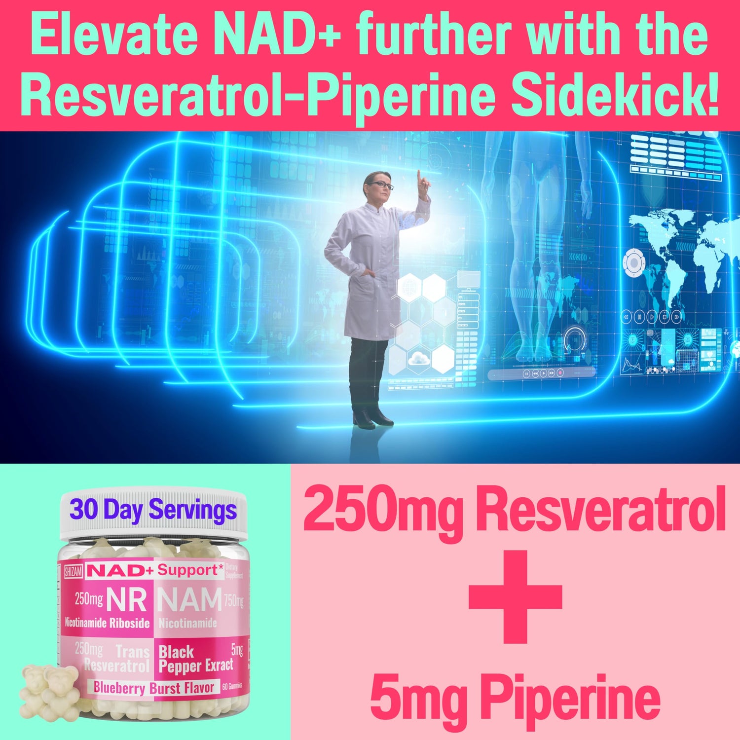 SHIZAM Nicotinamide Riboside NR NAM Resveratrol Gummies, 1000mg NAD+ NAD + Plus Nrf2 Activator Booster w Pure Niacinamide Vitamins B3 Capsules Pills Powder Supplements Alt NDA Regenerator 500mg