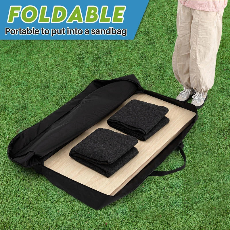 - Material Construction: experience stability with our cornhole boards, masterfully crafted with felt and PE backing material; This construction prevents the sandbag board from moving, ensuring the safety and smoothness of your play