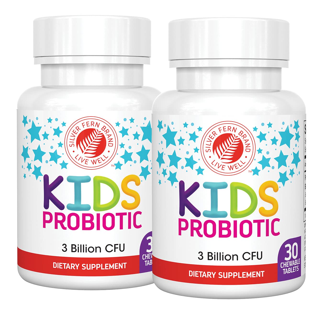 Silver Fern Brand Kids Ultimate Probiotic - 2 Bottles - 30 Chewable Tablets Each - Sugar & Gluten Free - Children's Dietary Supplement - DNA & Survivability Verified - Digestive & Immune Support