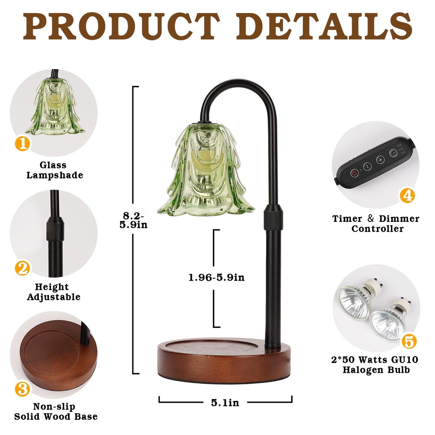 Small Candle Warmer Lamp with Timer, Adjustable Green Lamp Warmer for Jar Candles, Unique Women Gifts for Birthday, Dimmable Candle Heater, Christmas Gifts, Cute Wax Warming Light with Wood Base
