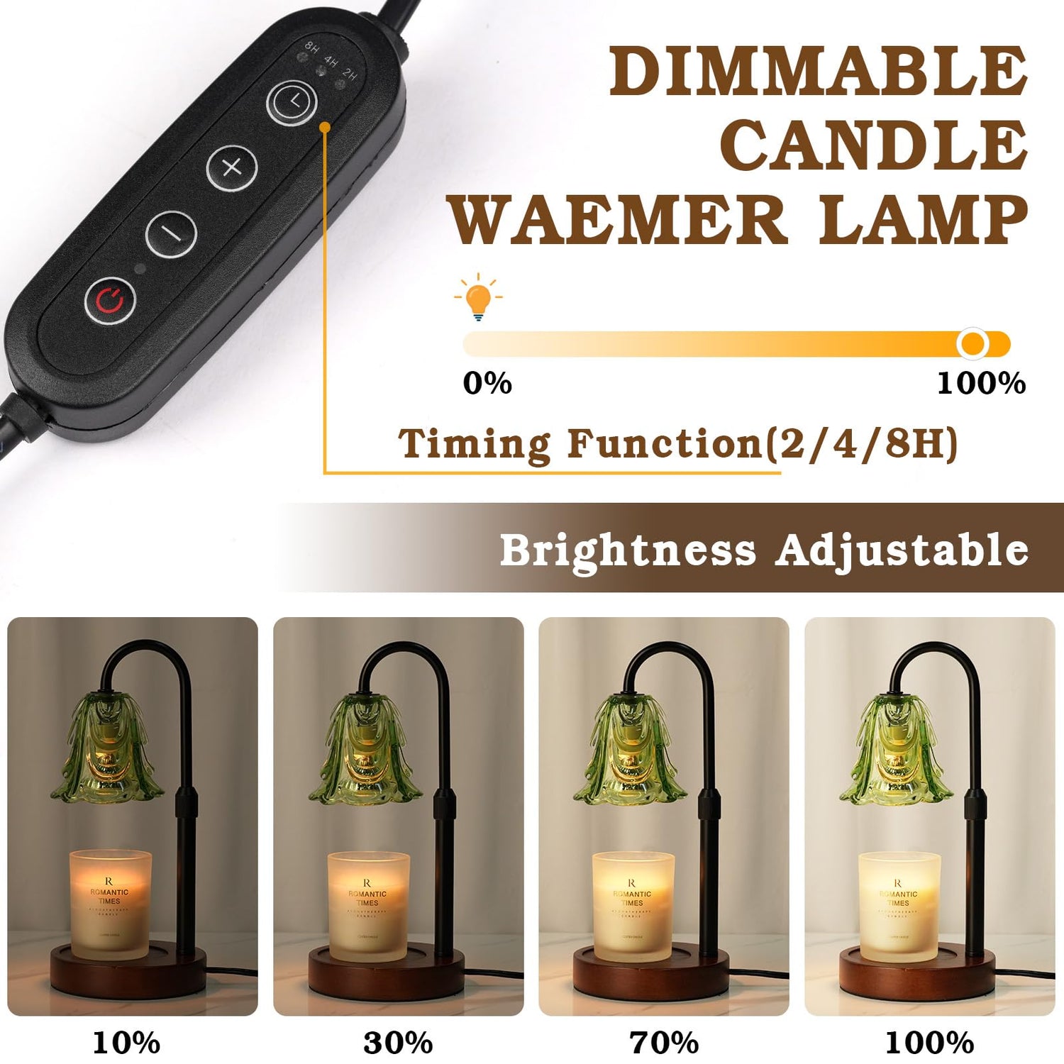 - Timer & Dimmable Controller: This candle burner lamp features a timer and is dimmable, allowing you to meet different ambiance needs. And it has a 2 4 8 hours shut-off function. The brighter you set, the faster jar candles melt. It is a beautiful candle melter lamp