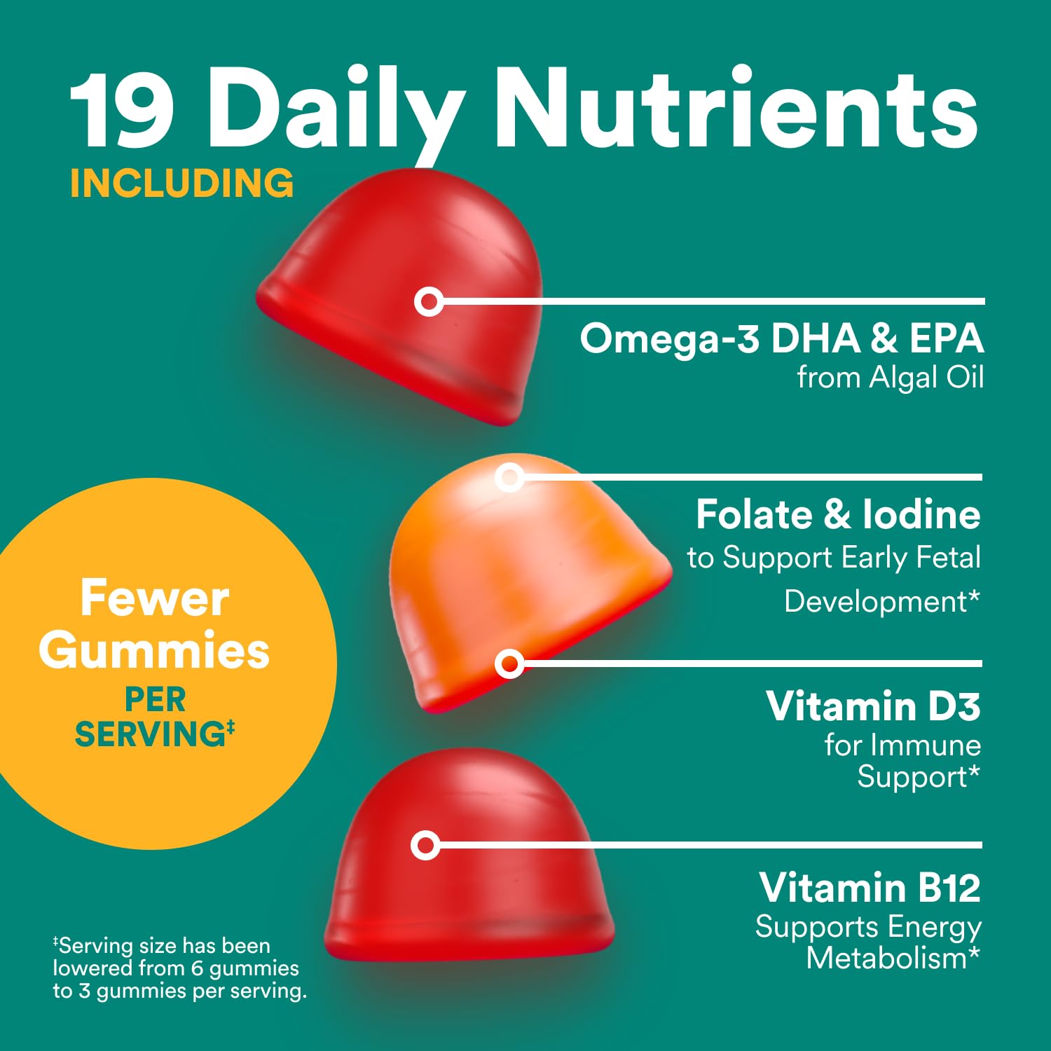 - WITH 19 NUTRIENTS TO SUPPORT YOUR PREGNANCY*: Our formula, backed by research, includes vitamins D3, B12, K1, and C, as well as biotin, folate, and Omega-3 DHA & EHA from Algal Oil, meaning you get the benefit of a daily multi and omegas all in a delicious serving