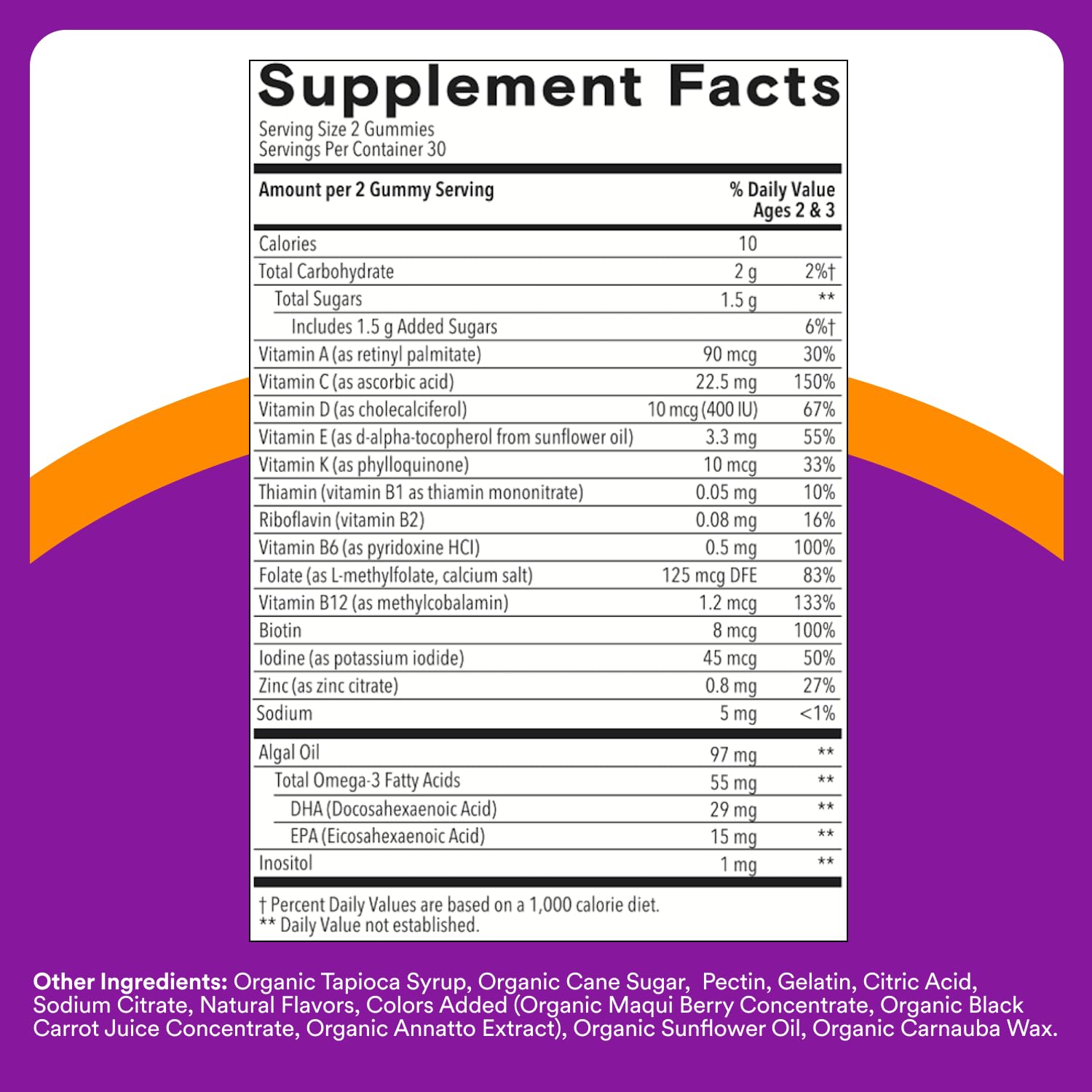 - DELICIOUS TASTE & KID-APPROVED: Grape, Orange, and Strawberry Banana Flavors with Other Natural Flavors. Toddlers 2-3 years now take 2 gummies daily under adult supervision. May be taken with or without food. Chew each gummy thoroughly.