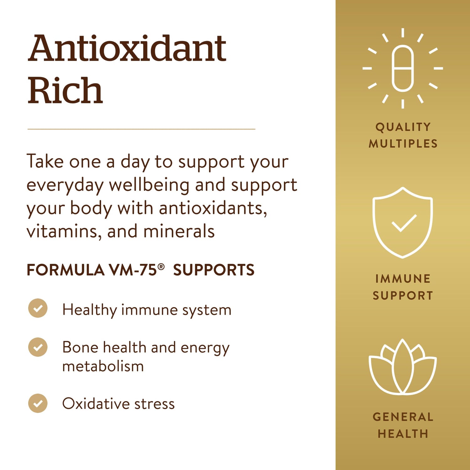 - Antioxidant & Immune Support; Solgar Formula VM-75 contains beneficial antioxidants, which can help to fight free radicals and support a healthy immune system