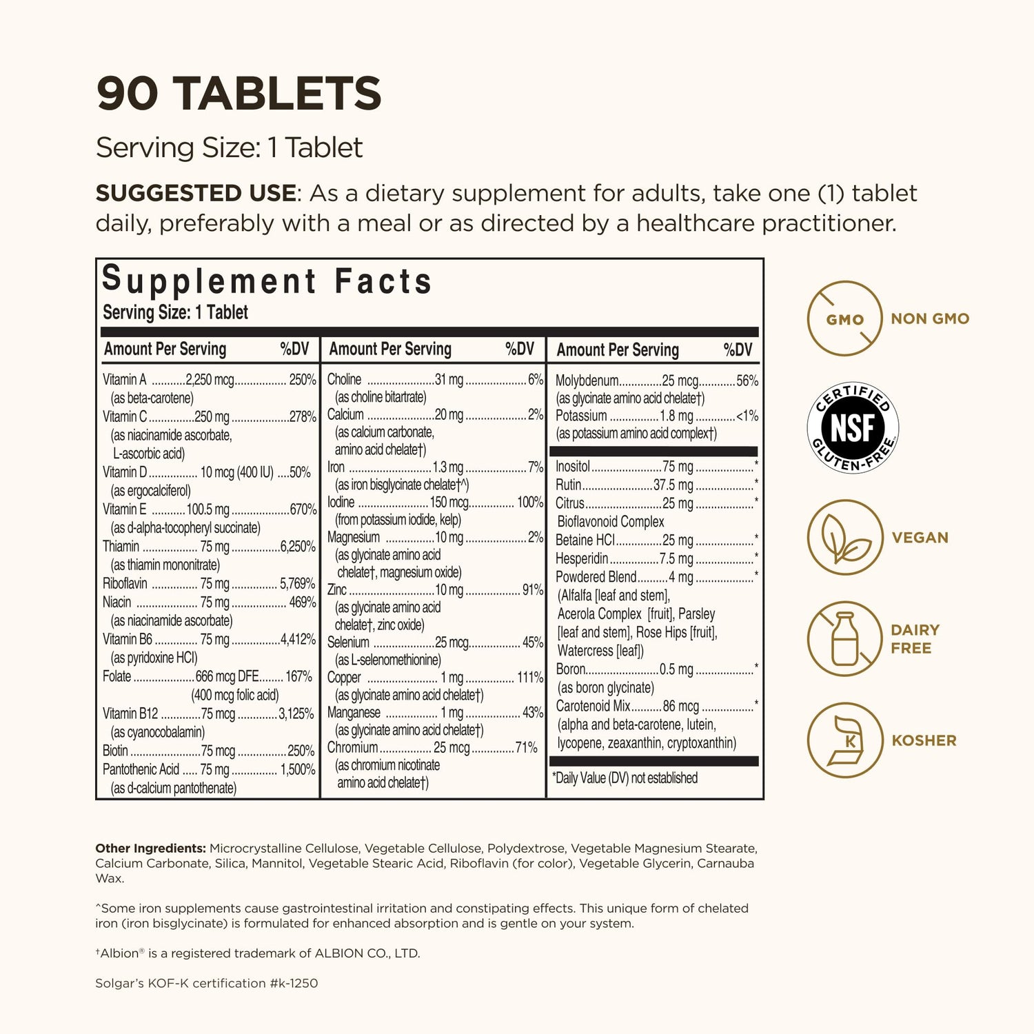 Solgar Formula VM-75, 90 Tablets - Multivitamin with Chelated Minerals - Vitamin A, B6, B12, C, D, E - Biotin, Magnesium, Calcium, Iron, Zinc - Vegan, Gluten Free, Dairy Free, Kosher - 90 Servings